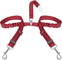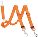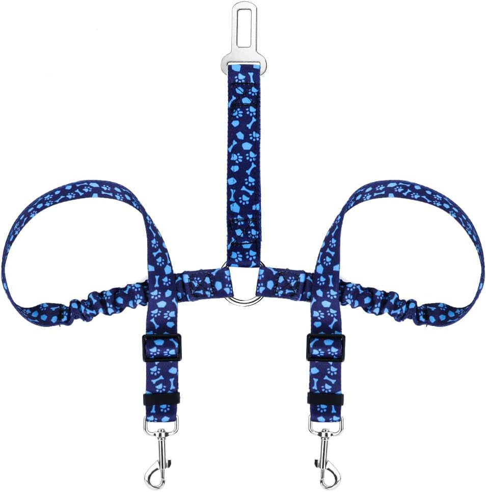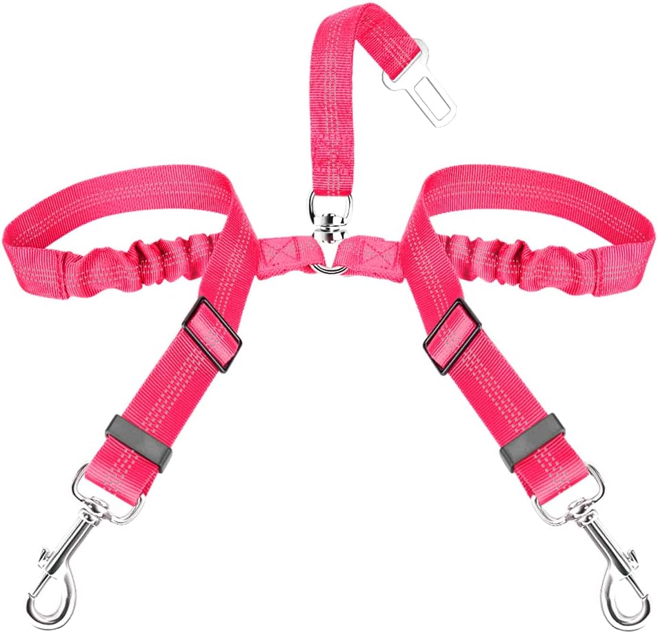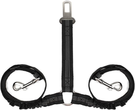 Well-made and Special Design--- Designed with the inverted Y piece, and two elastic nylon bungee straps being linked to a seat belt clip with a ring, this 2 in 1 No-Tangle dual dog seatbelt harness helps keep two dogs separated, not twisted into each other. Also, the reflective stitching design makes it ideal for night use. The elastic bungee helps prevent the dog from jerking while sudden movements.