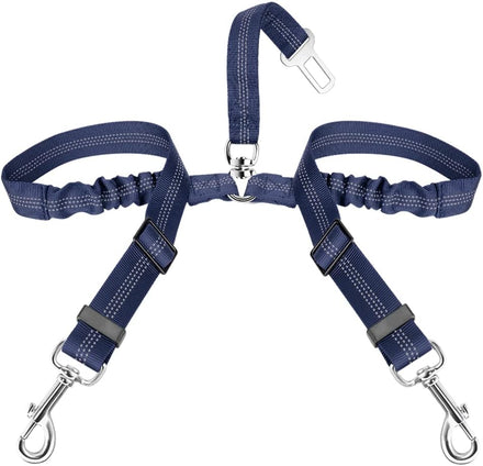 Keeping Safe and Comfortable --- This double dog seat belt helps to ensure the safety of your two pets as well as prevent you from distracting when driving. Besides, it’s effective to focus your two dogs to sit, stand, lie down comfortably or reach to see out the window but keep the dogs from jumping around in the car and stop them from trying to jump over into the front seat.