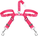 - Adjustable Length --- With a buckle on the straps and the elastic bungee inside, this dog car harness for two dogs can be adjusted from 20 inches to 28 inches and can be stretched to 32 inches for the maximum length. Good adjustable length so the dogs can get themselves comfy without restricting themselves.