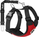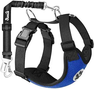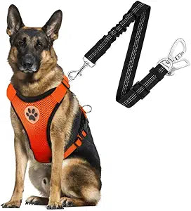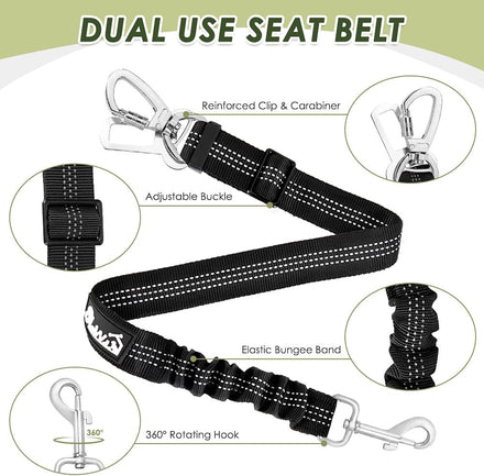 - Keep Dogs Safe --- Featured with superior nylon strap and durable mesh fabric, the harness for car is enough durable and built to last, guarding the safety of dogs and preventing driver from distracting when driving. The elastic bungee in seatbelt is shock-absorbent, effectively strengthening the protection of dogs from sudden brakes or sharp turns.