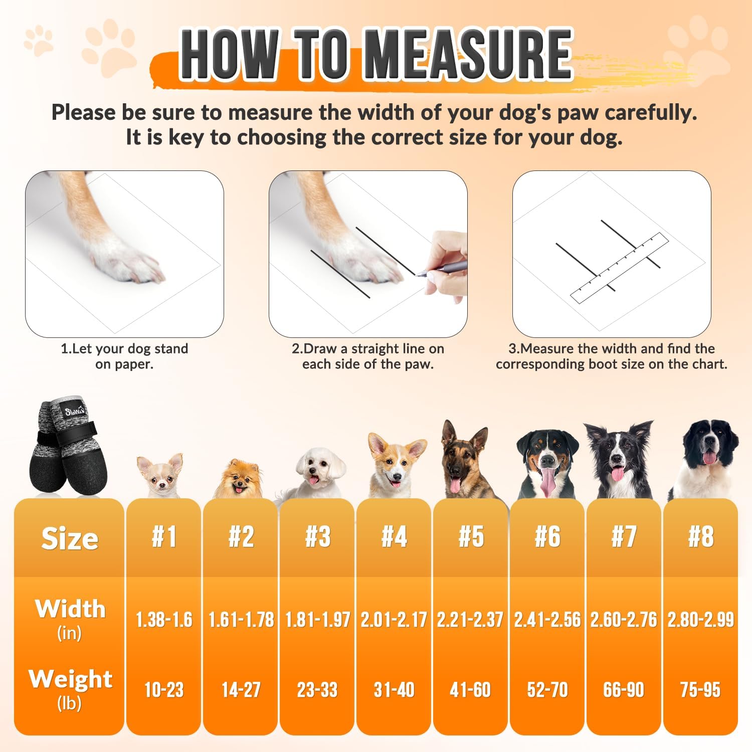 - Lightweight & Comfortable Fit --- Lighter and softer than traditional dog paw protectors, these are ideal for puppies and dogs of all sizes, with 8 available sizes to ensure a perfect fit for every paw. For the best wearing comfort, we recommend trimming your dog's nails before putting them on.