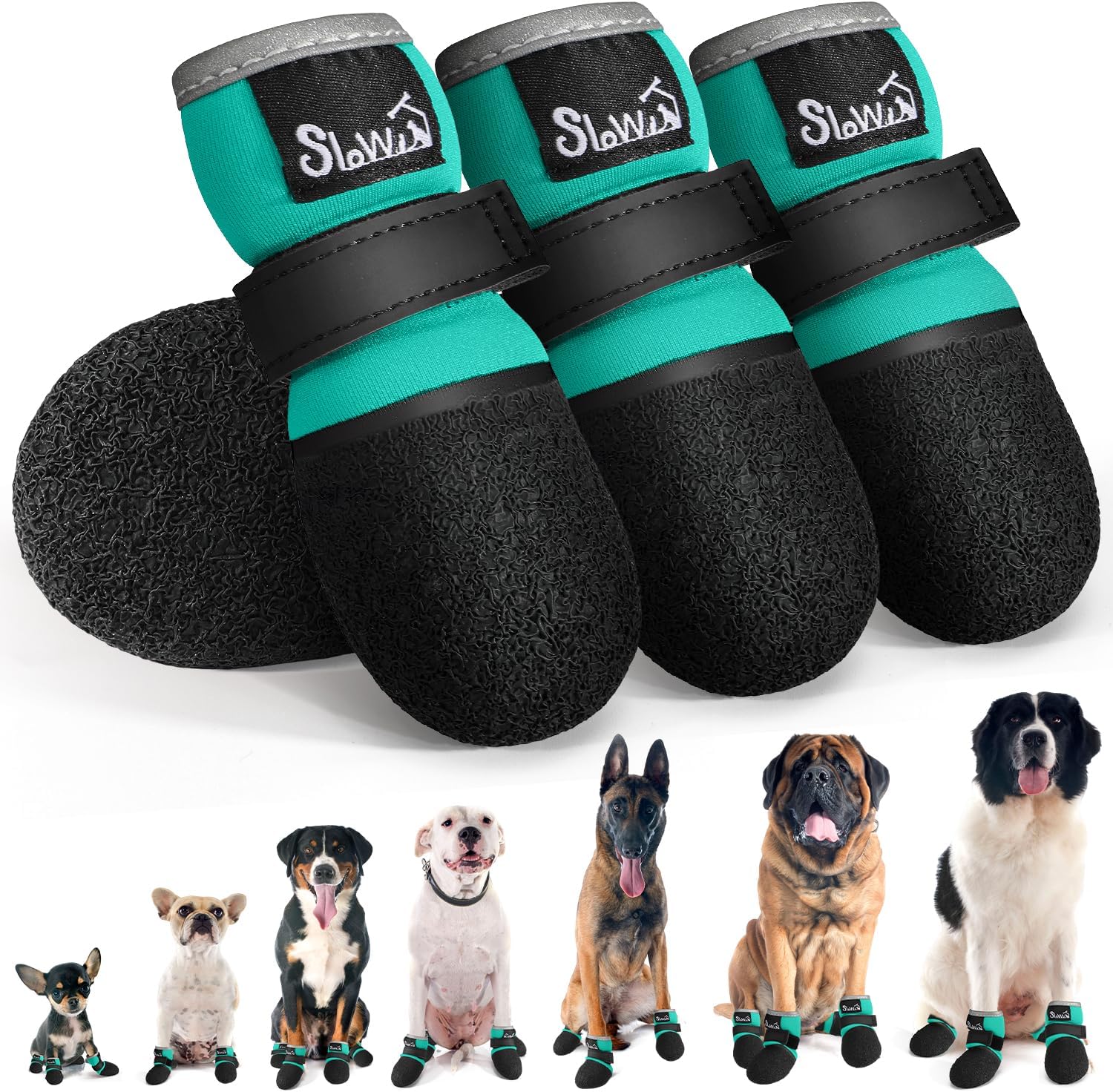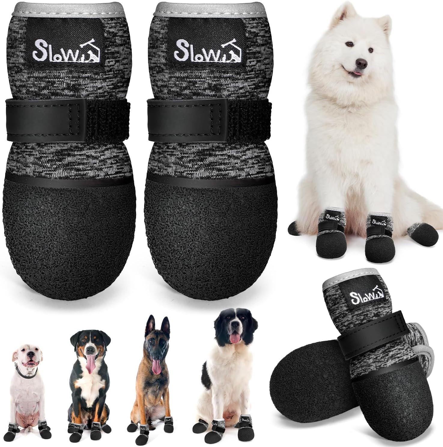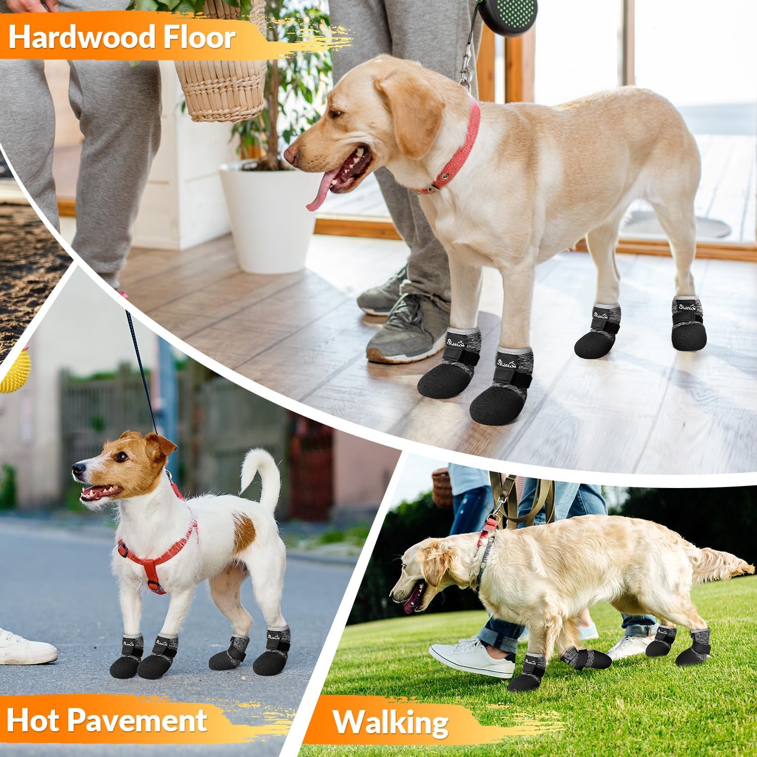 - Secure & Adjustable Fit --- Designed with hook-and-loop straps for easy on-and-off use, these dog boots can be adjusted to fit various paw sizes securely, ensuring they stay in place while playing, running, or walking.