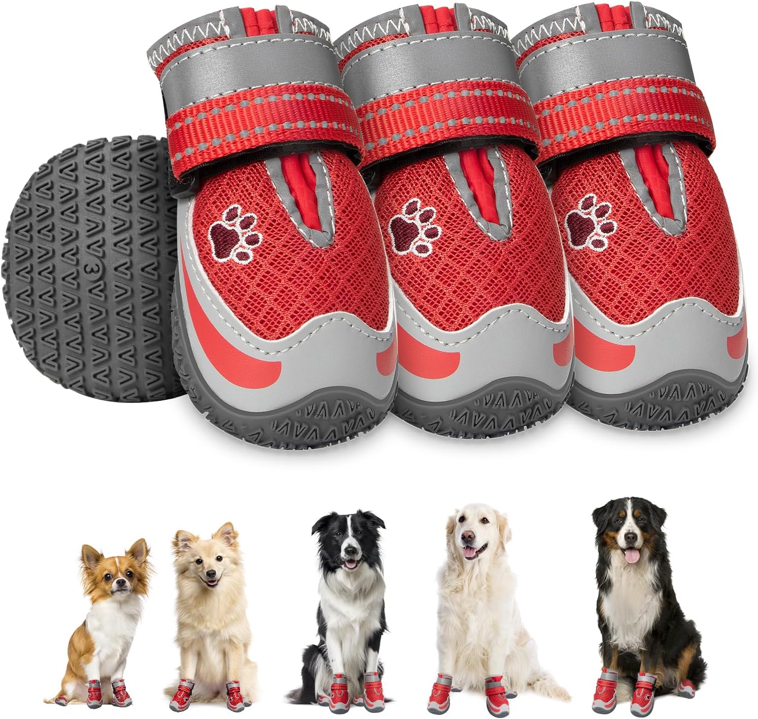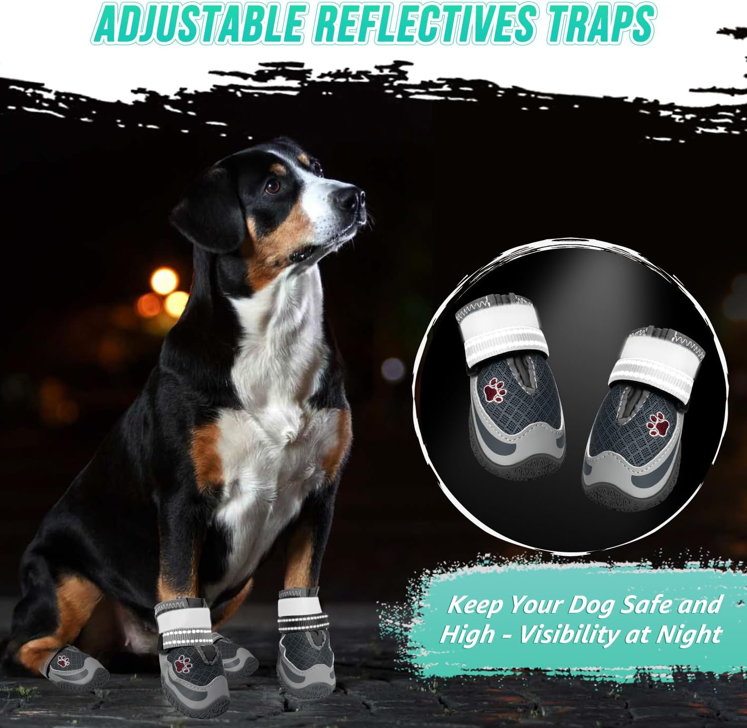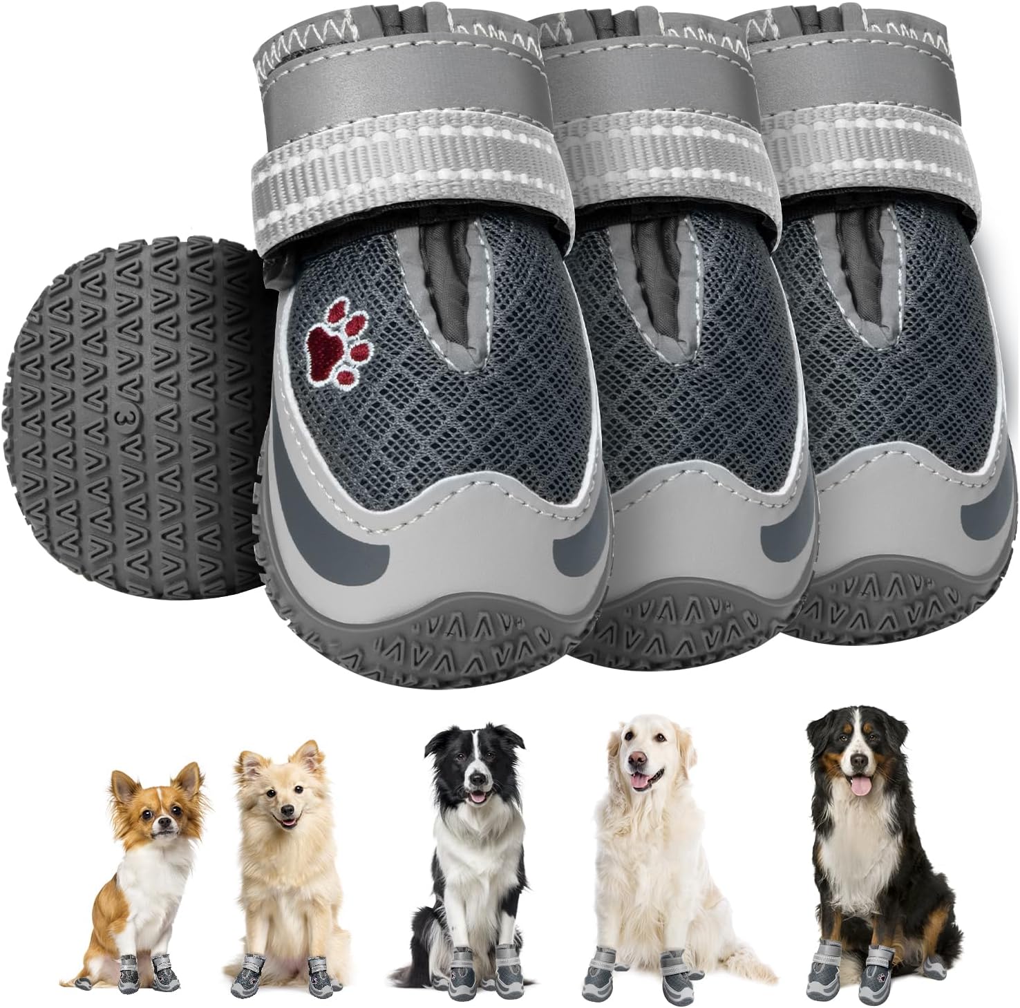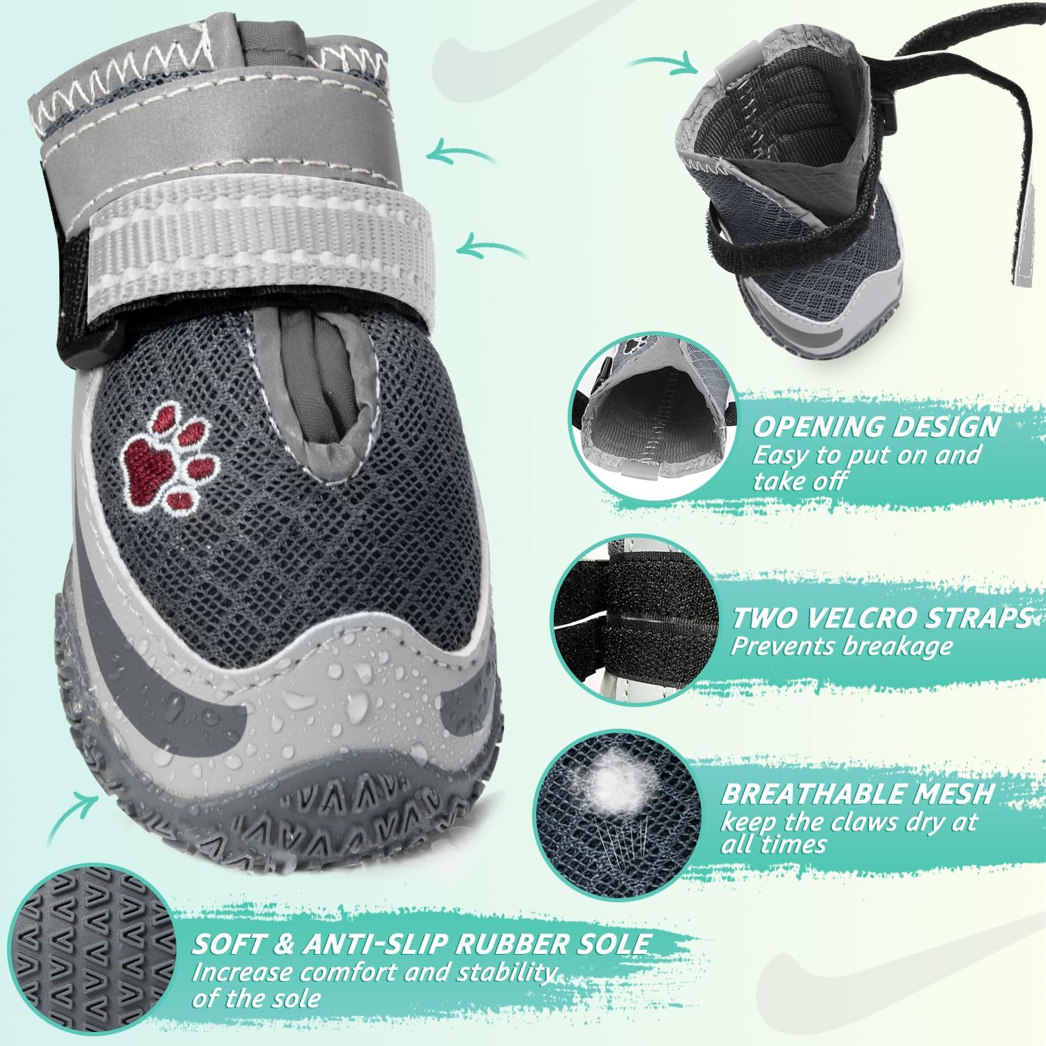 SlowTon Dog Shoes for Large Dogs - Mesh Breathable Dog Boots for Hot Pavement Summer Winter Snow, Anti-Slip Reflective Dog Booties Paw Protector for Outdoor Walking, Indoor Hardfloors(Grey,1)