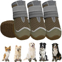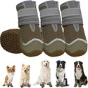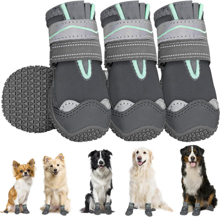 【Waterproof & Reflective】The toe parts of dog booties are made of space leather material, which is durable and waterproof. The reflective design on the dog shoes can improve visibility in the dark and quickly locate the dog's position to provide protection for the dog. It is suitable for outdoor walks, night running, and hiking.