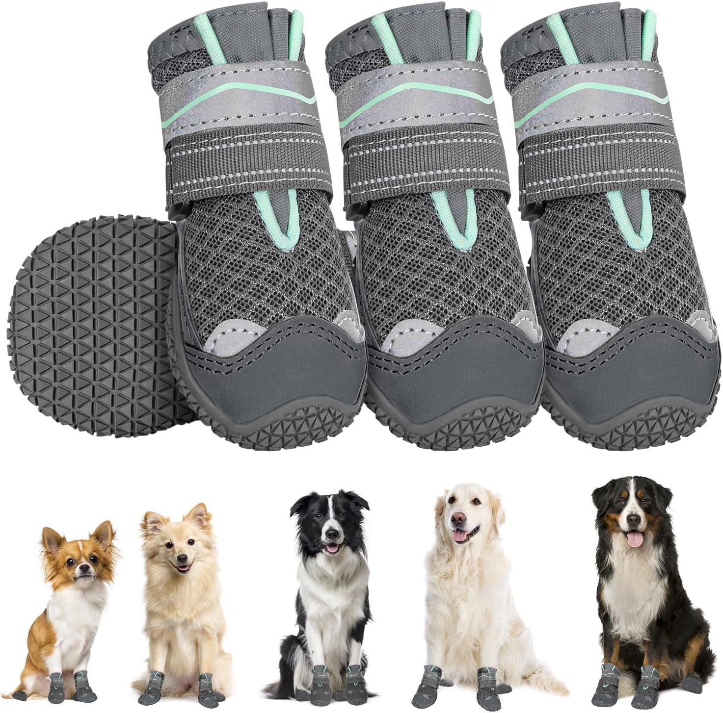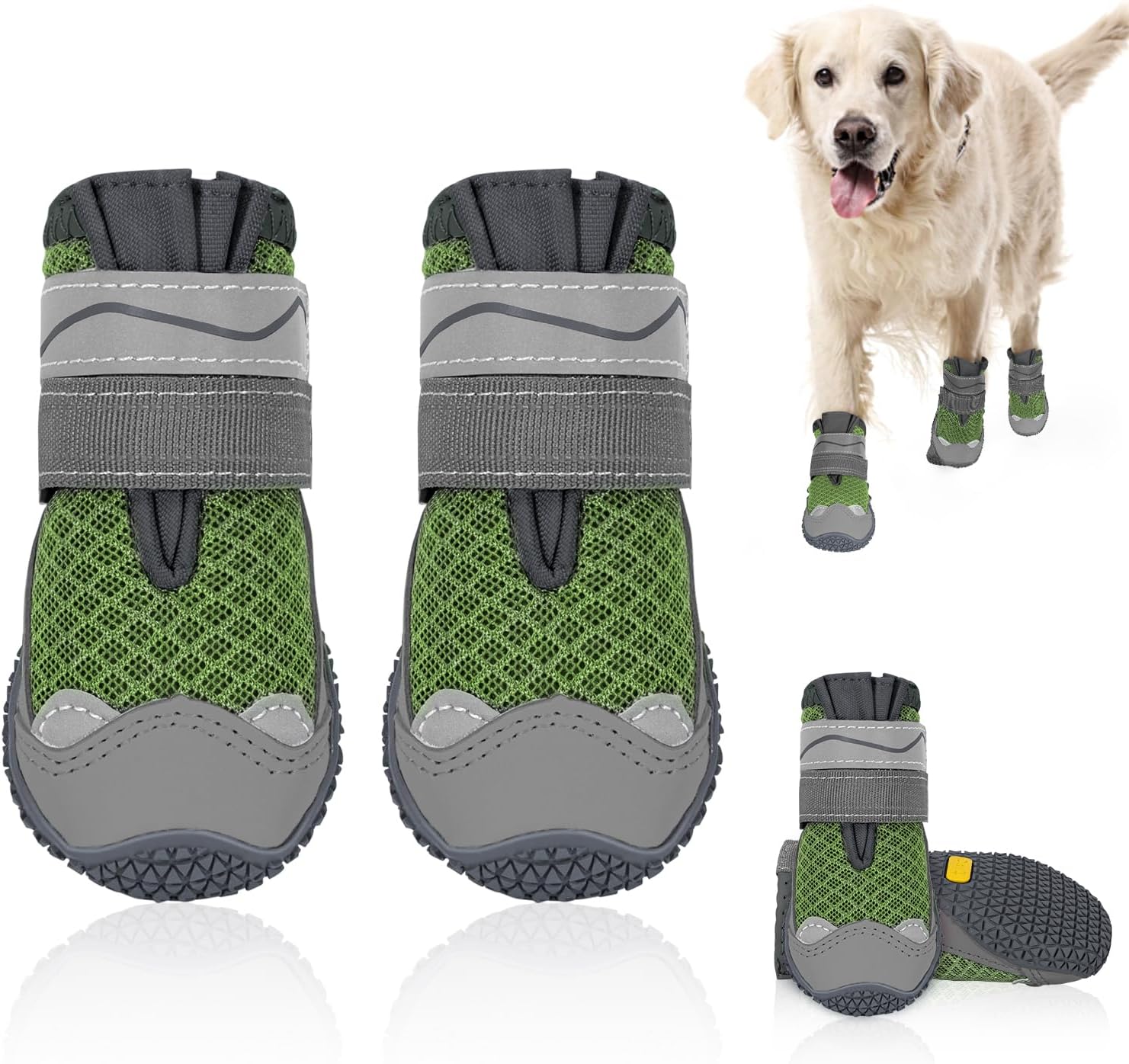 SlowTon Dog Shoes for Large Small Medium Dogs - Breathable Dog Boots for Summer Hot Pavement, Paw Protector for Outdoor Walking Winter Snow, Anti-Slip Rubber Dog Booties for Hardwood Floor (Green, 6)
