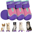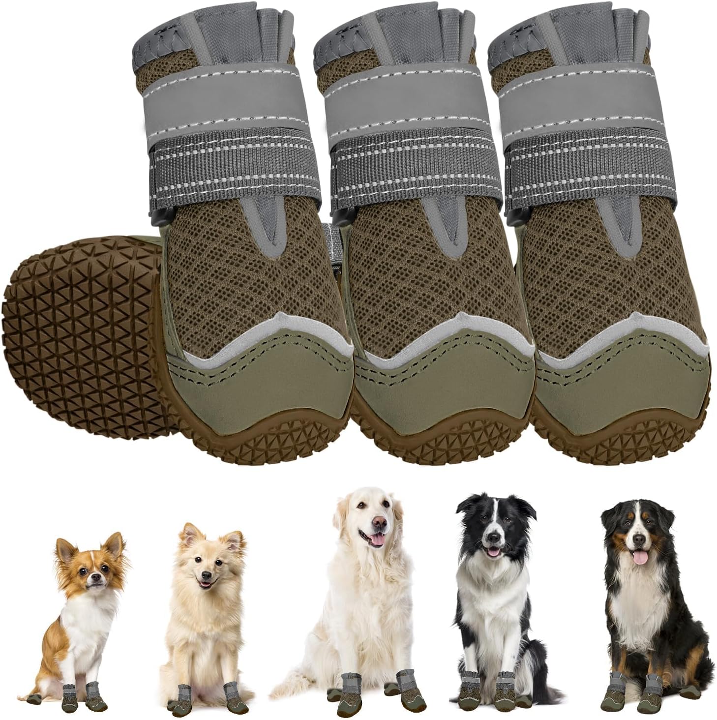 【Comfortable & Breathable】The dog shoes Adopt three layers of mesh and Premium rubber soles. And the design of the dog boots fit the shape of the dog's paw. It is soft and comfortable, breathable, not stuffy, and will not cause rubbing or chafing on your dog's paw. High quality fabrics can effectively protect dog paws from hot pavement and sharp stuff, such as stones and glass. It can also protect injured paws and weak paws from snow and ice in winter.