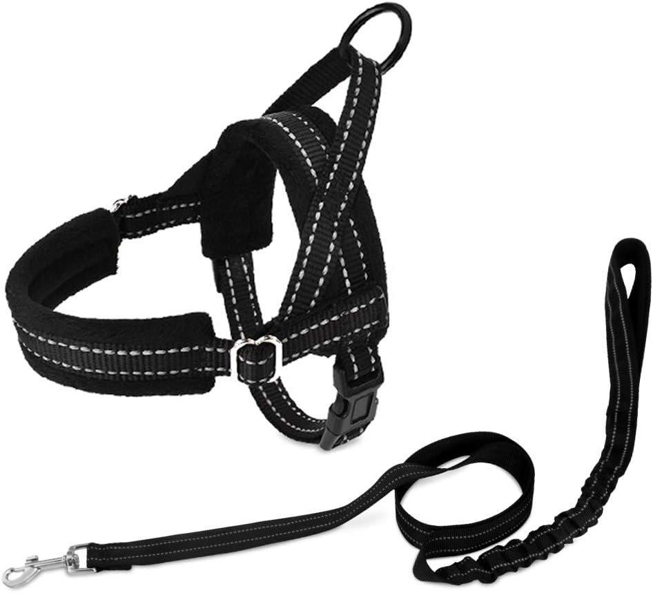 - No Pull & No Choking --- The triangle design on both sides of the harness help to distribute the pull stress, plus the bungee leash connected to the D ring on dog’s back, make the harness combo effective no pulling, and no worrying about dog choked when a sudden pull.