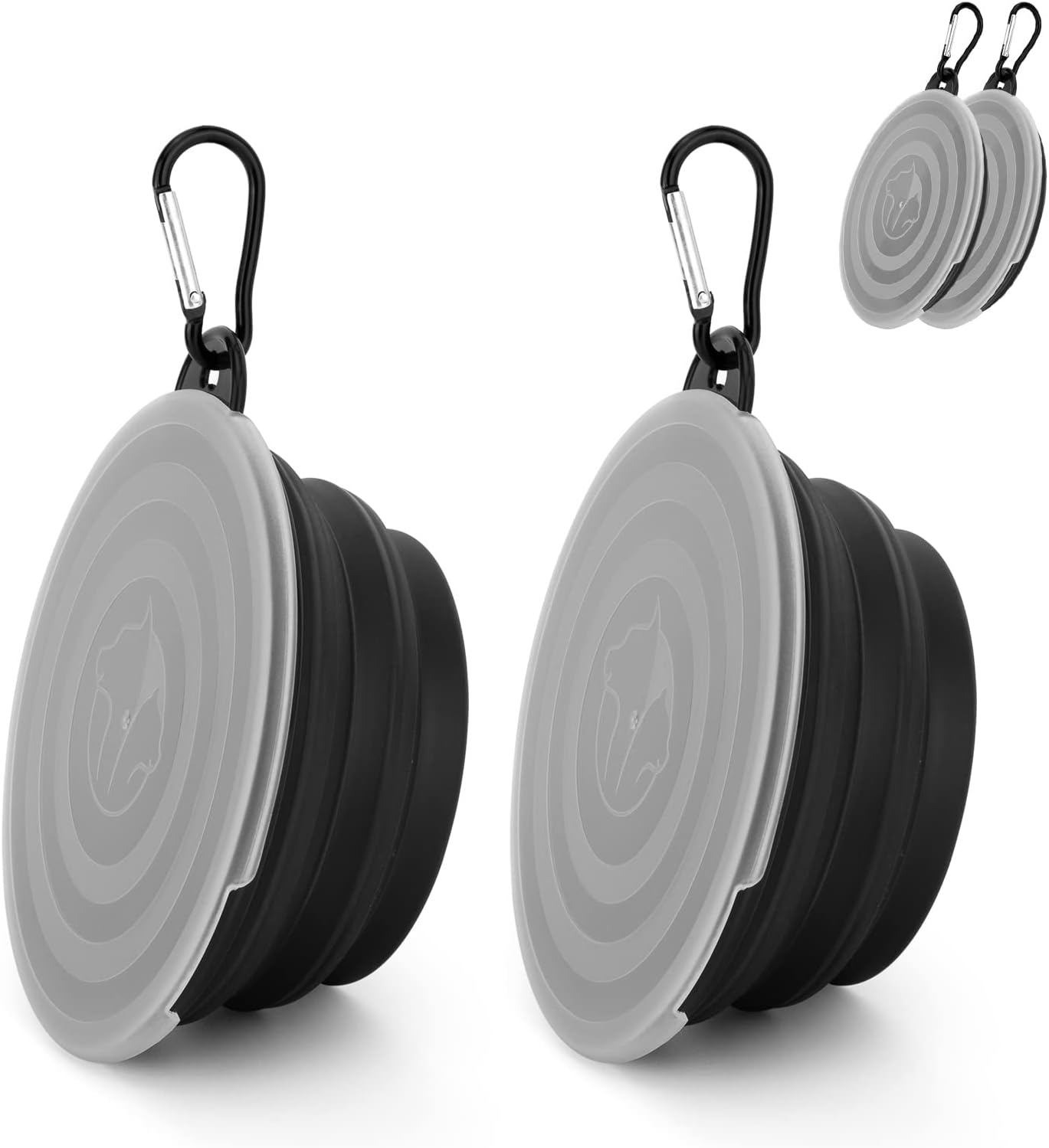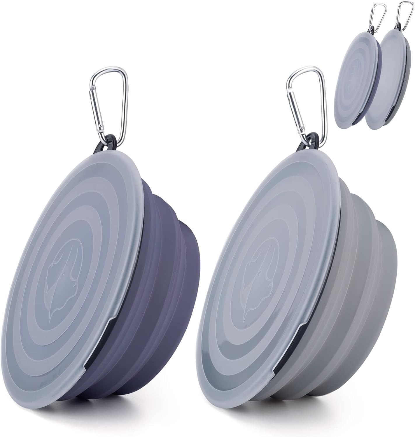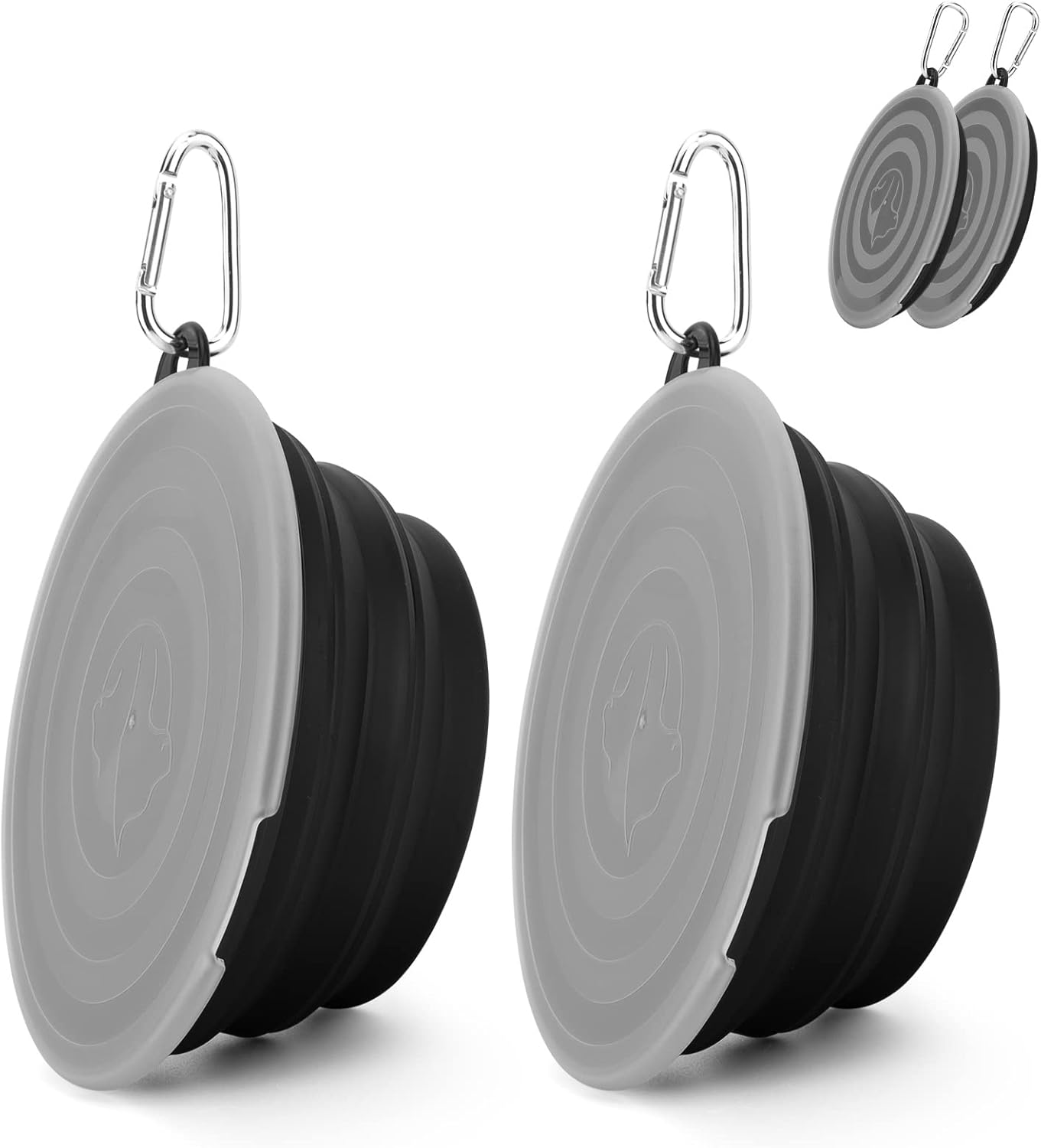 - COLLAPSIBLE WITH COVER LIDS: The collapsible dog travel bowl is lightweight, convenient for storage because of the collapsible design, save space and easy to expand or fold.Come with cover lids,PLEASE NOTE,these lids are not airtight type, so it is not leak proof,only to use to keep the bowl clean from dust and dirty when carry.