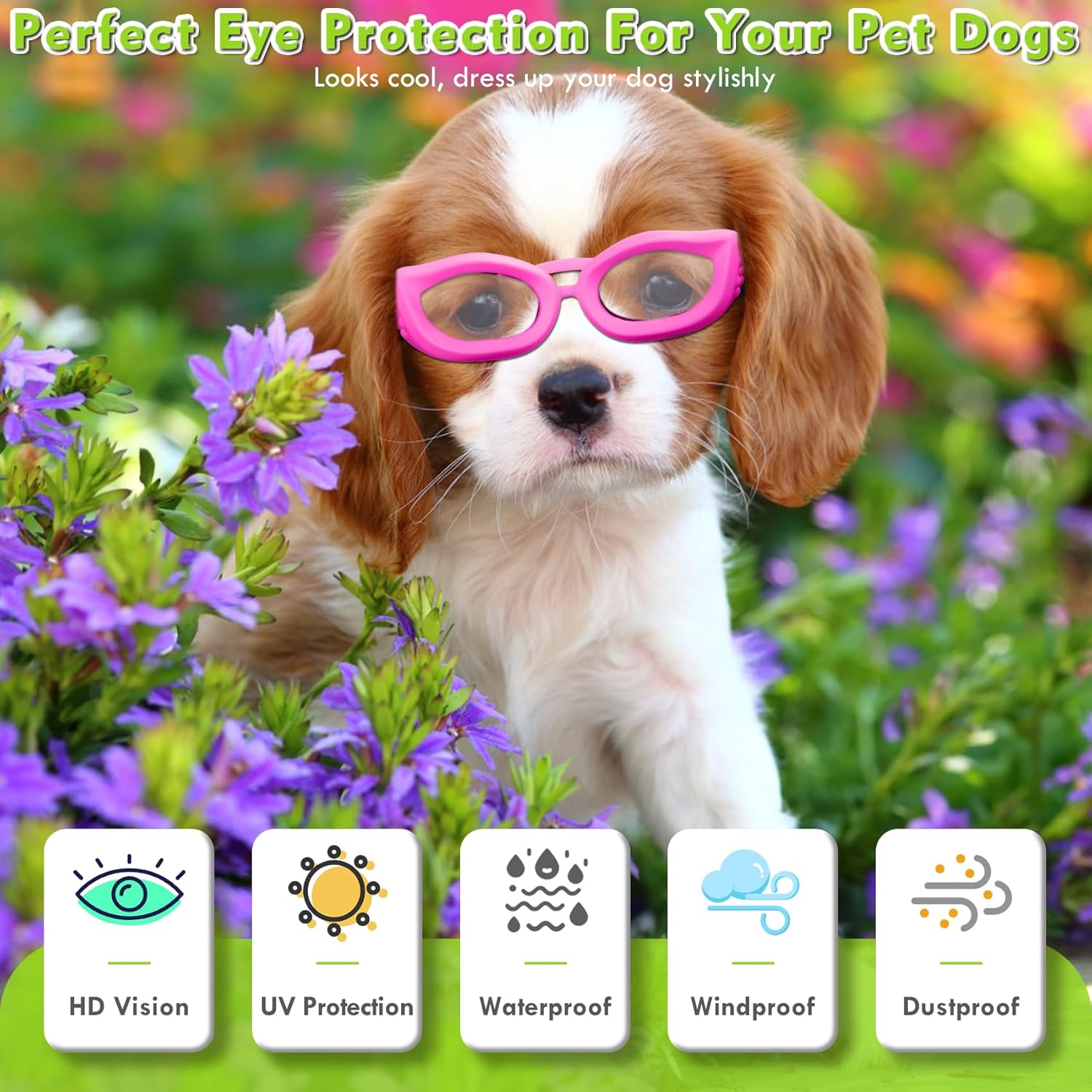 - Dog Sunglasses for Small Breed - Cute Decoration for your pets. The pet sunglasses is lightweight, Windproof, snow-proof, UV protection, shatterproof and debris proof.