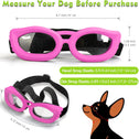 - The puppy goggles has adjustable elastic back strap and chin strap for comfortable fit. The pet sunglasses is suitable for Small Dogs or Large Cats. Such as Chihuahua, Pomeranian, Boston Terrier, Maltese, Teddy Dog, Bichon Frise, Shorthair Cat, Balinese Cat etc.