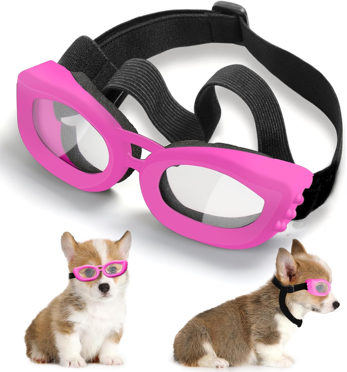 - The small pet goggles is composed of PC Lens + PVC Frame + Adjustable Nylon Band, has great toughness and flexibility, suitable for small dog and cat face types.