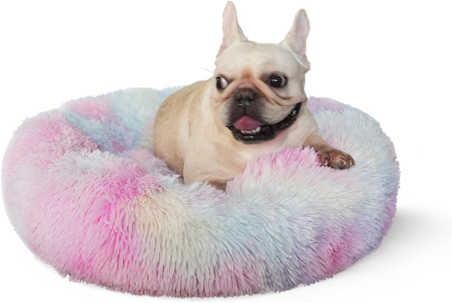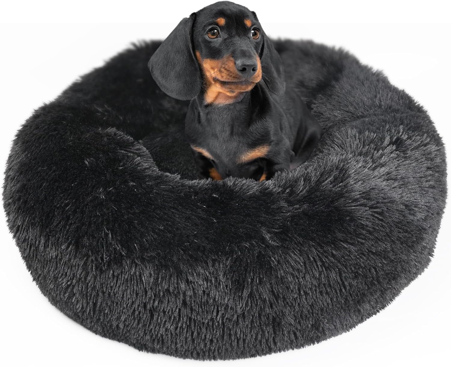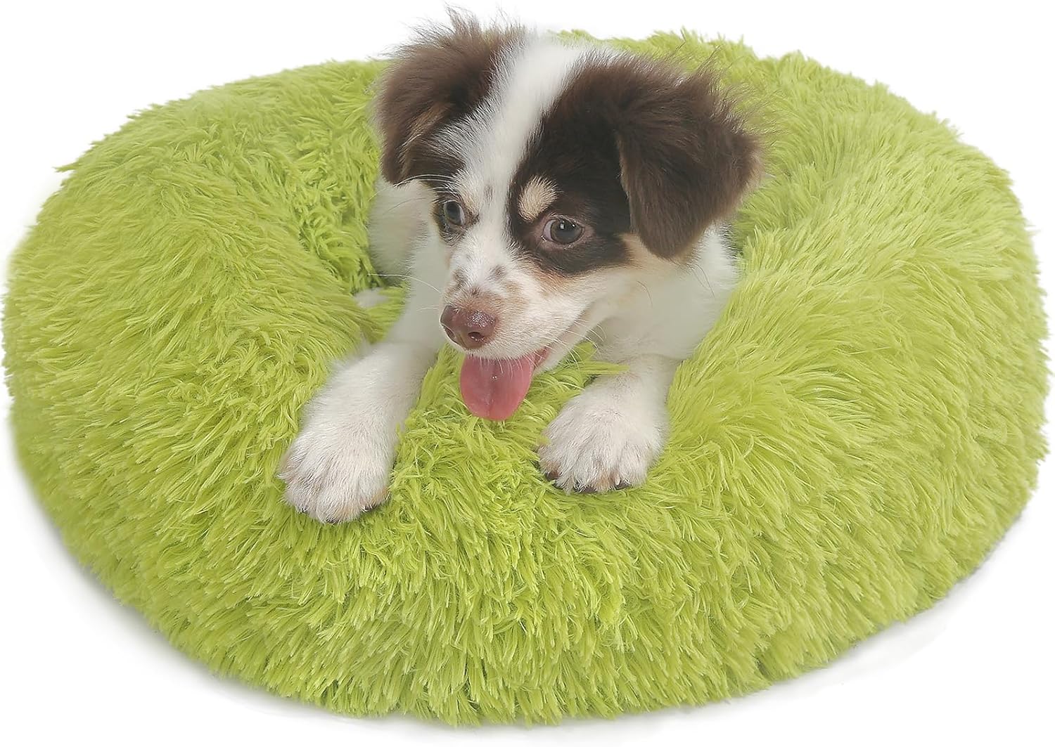 - Fluffy calming bed for dogs: A dog bed allows your puppy to have their own space, a place where they can curl up and relax. Your dog will get a solid night's sleep in this luxurious round bed. The cushioned plush Expandable Polyethylene bolster dog bed provides your dog exceptional comfort, even for dogs with joint pain or arthritis. Plush design dog bed is perfect for any breed of puppy.