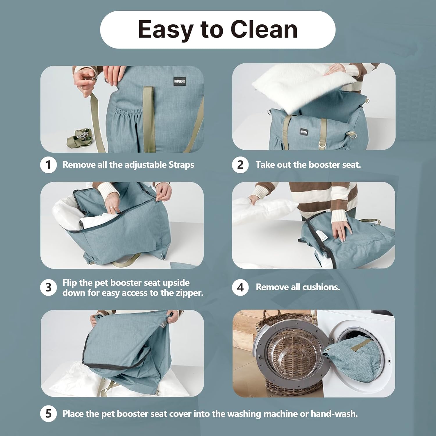 - Effortless Cleaning: Featuring a fully removable design, the dog booster car seat includes a sliding zipper for easy disassembly. The padding is enclosed in a washable bag, and the seat cover is machine washable for hassle-free maintenance. The waterproof base and fabric prevent spills and accidents, making cleanup simple and efficient.