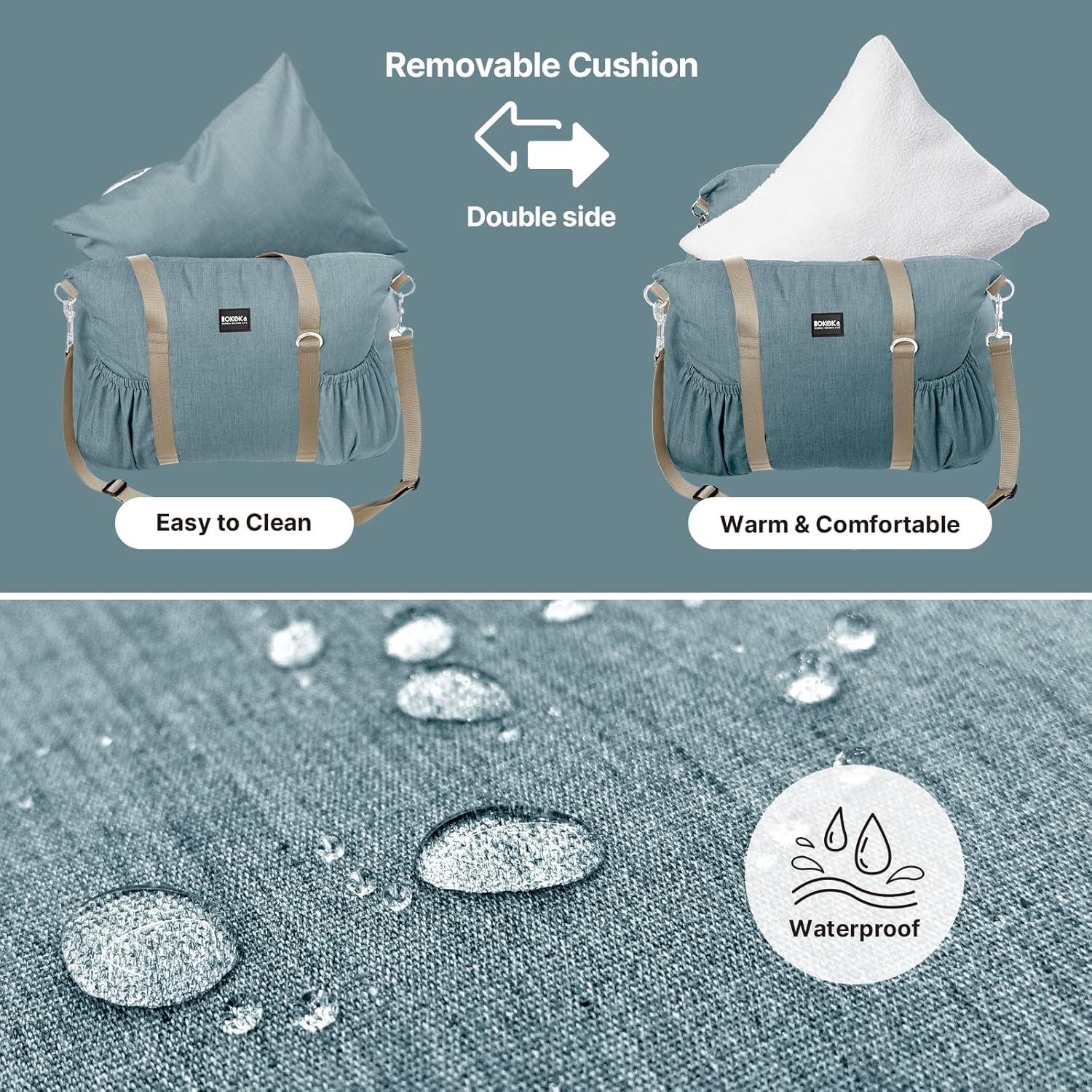 - Durable and Comfortable Design: Made from a soft blend of 20% cotton and 80% polyester, the surface of the pet car seat for dogs provide a cozy touch. The high-density sponge padding minimizes road vibrations, delivering optimal support and comfort for your pet. Premium materials, including durable fabric, metal buckles, and snap hooks, ensure long-lasting use while keeping your pet warm and snug.