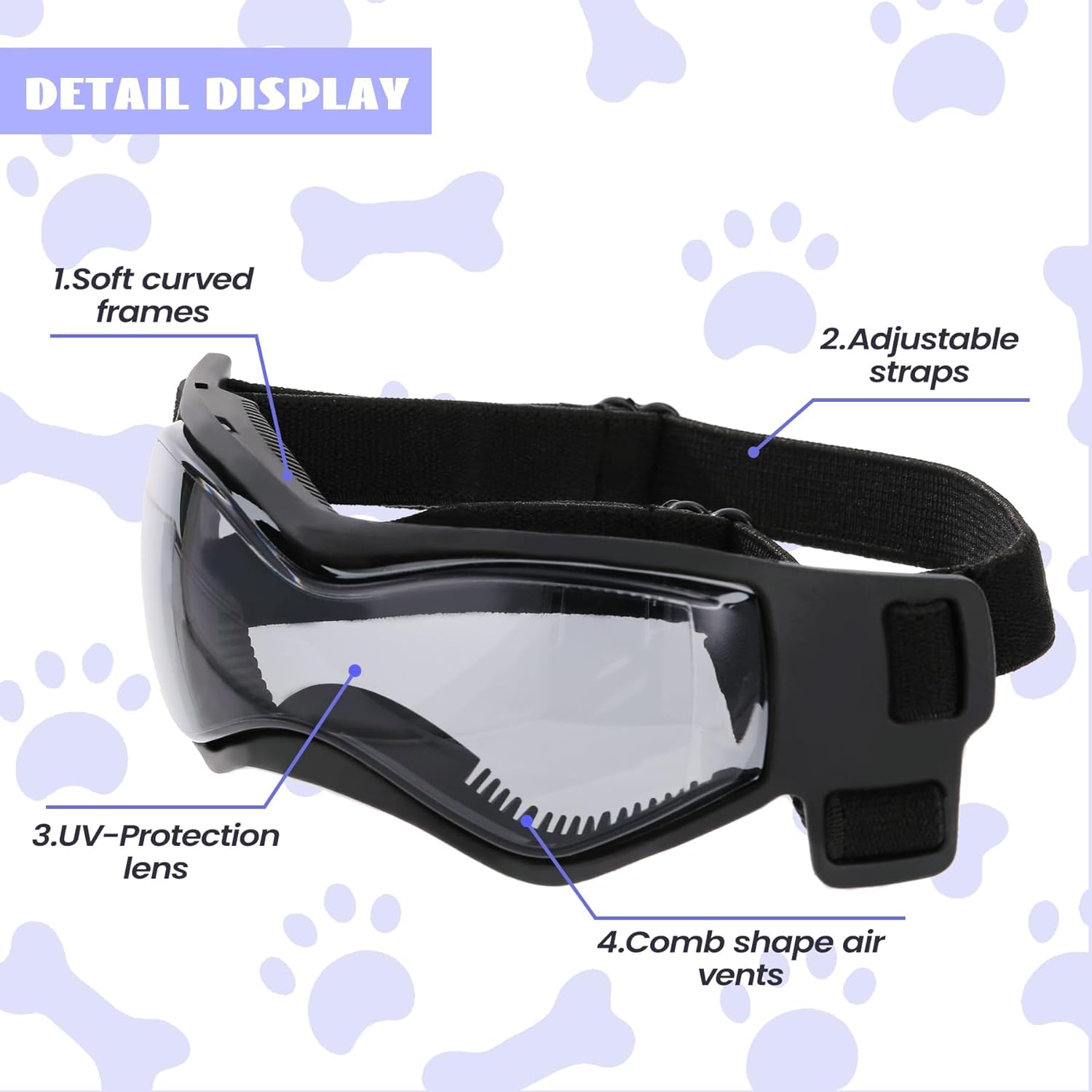 - Designed for small dogs: Light weight, soft materials, adjustable straps, and curved frames are all designed to make your pup comfortable and enjoy these glasses as soon as possible.