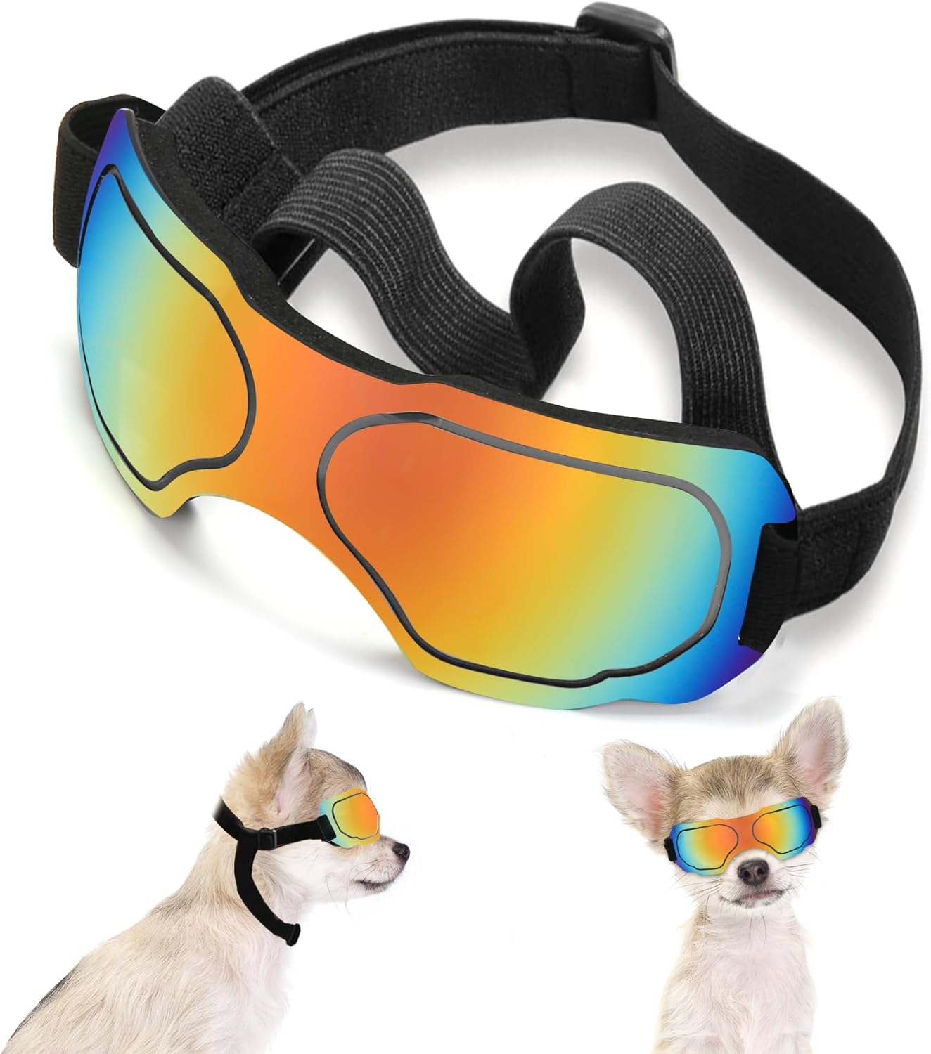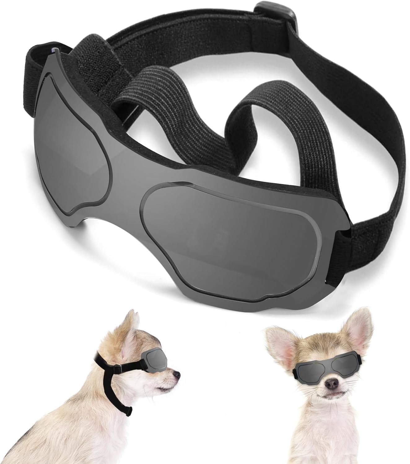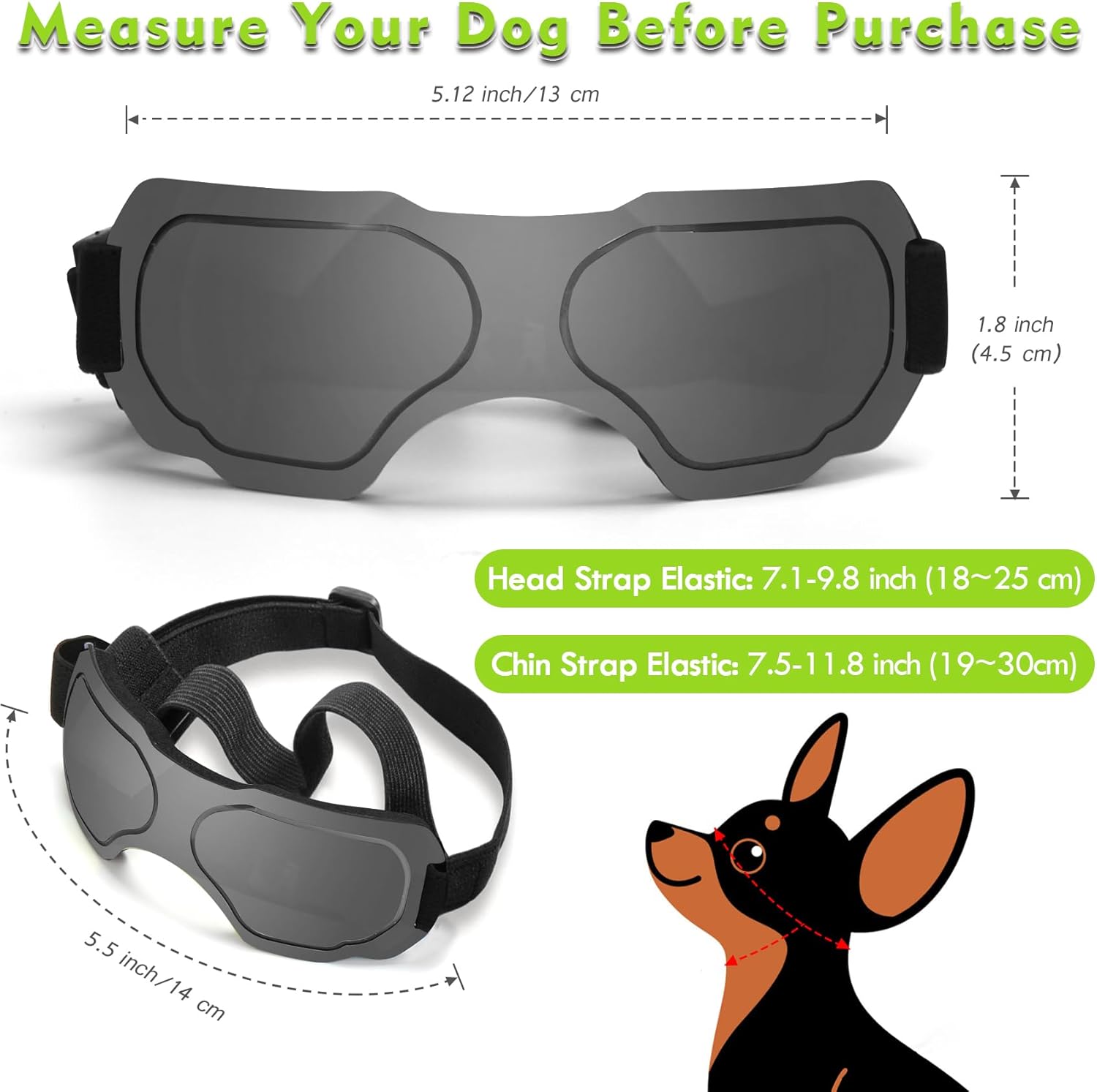 - BROAD FIT - The puppy goggles has adjustable elastic back strap and chin strap for comfortable fit. The pet sunglasses is suitable for Small Dogs or Large Cats. Such as Chihuahua, Pomeranian, Boston Terrier, Maltese, Teddy Dog, Bichon Frise, Shorthair Cat, Balinese Cat etc.