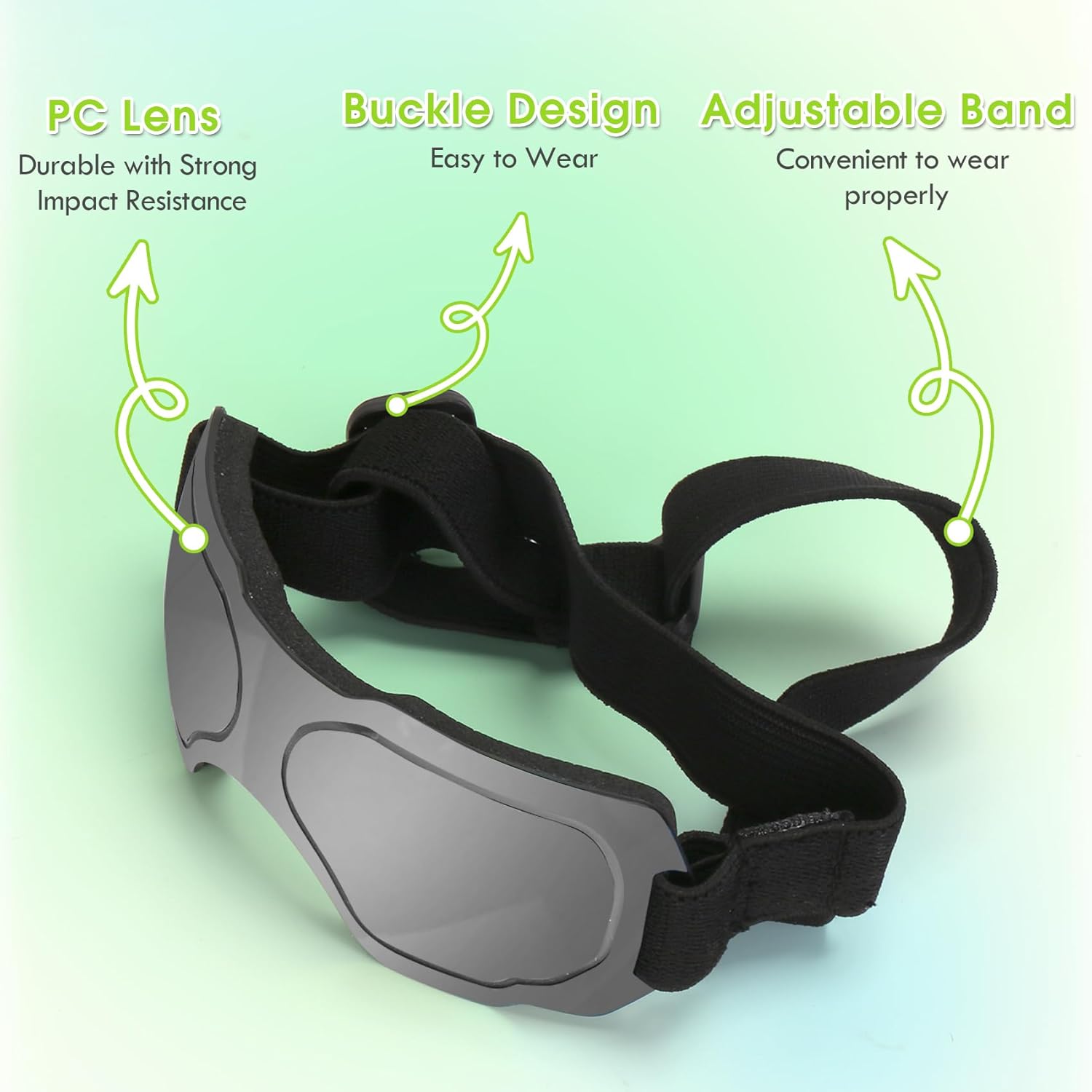 - COOL DOG GOGGLES - Cute Decoration for your pets. The pet sunglasses is lightweight, Windproof, snow-proof, UV protection, shatterproof and debris proof.