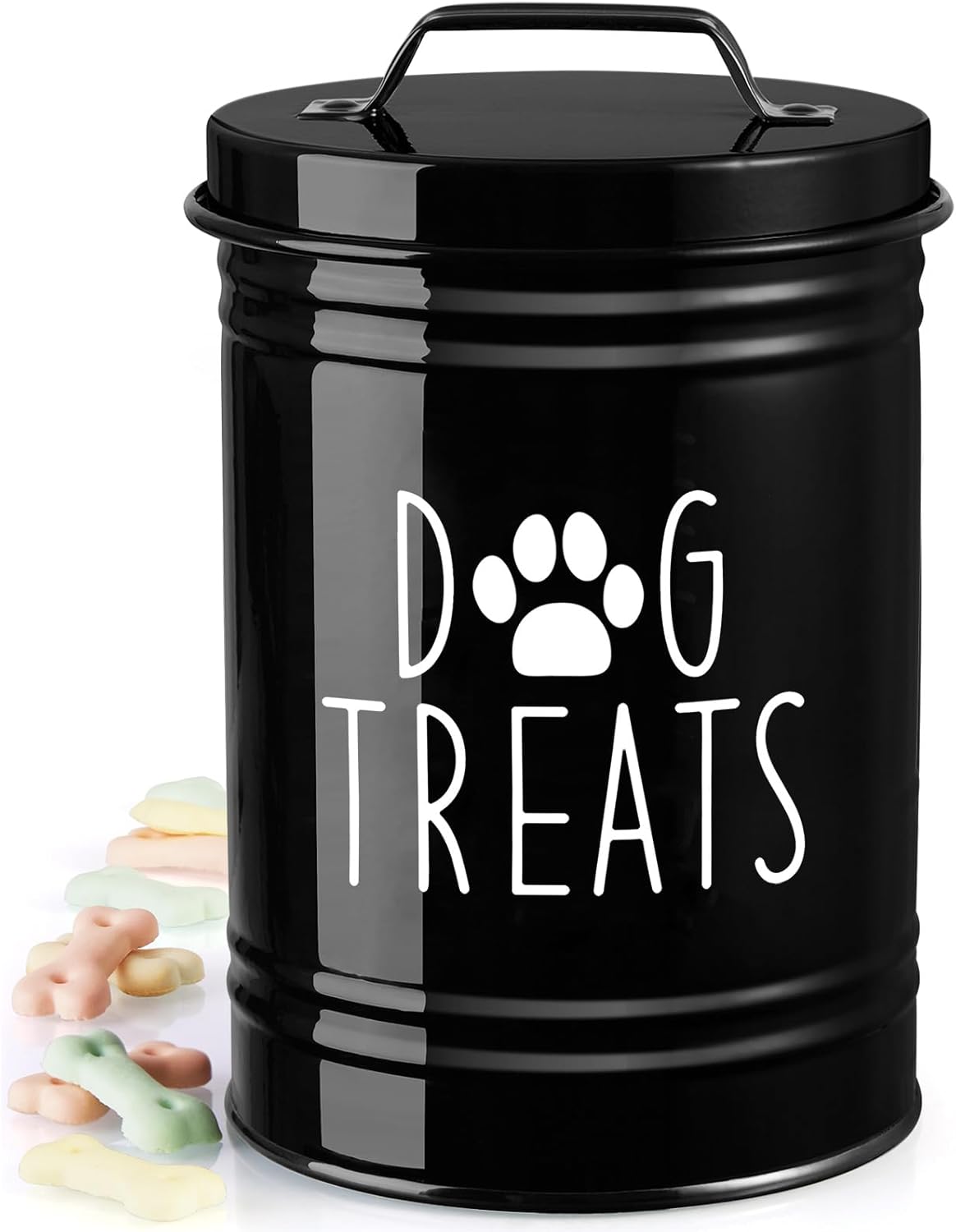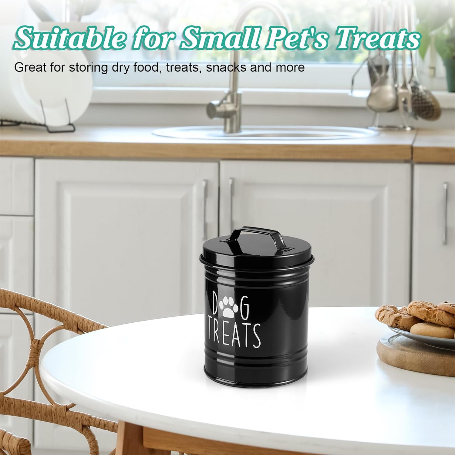 Small Dog Treat Container Airtight - 6" Tall X 4.9" Round Black Dog Treat Jar for Kitchen Counter - Rustic Treat Storage Canister for Dogs, Cats, Small Animals - Gifts for Pet Owners