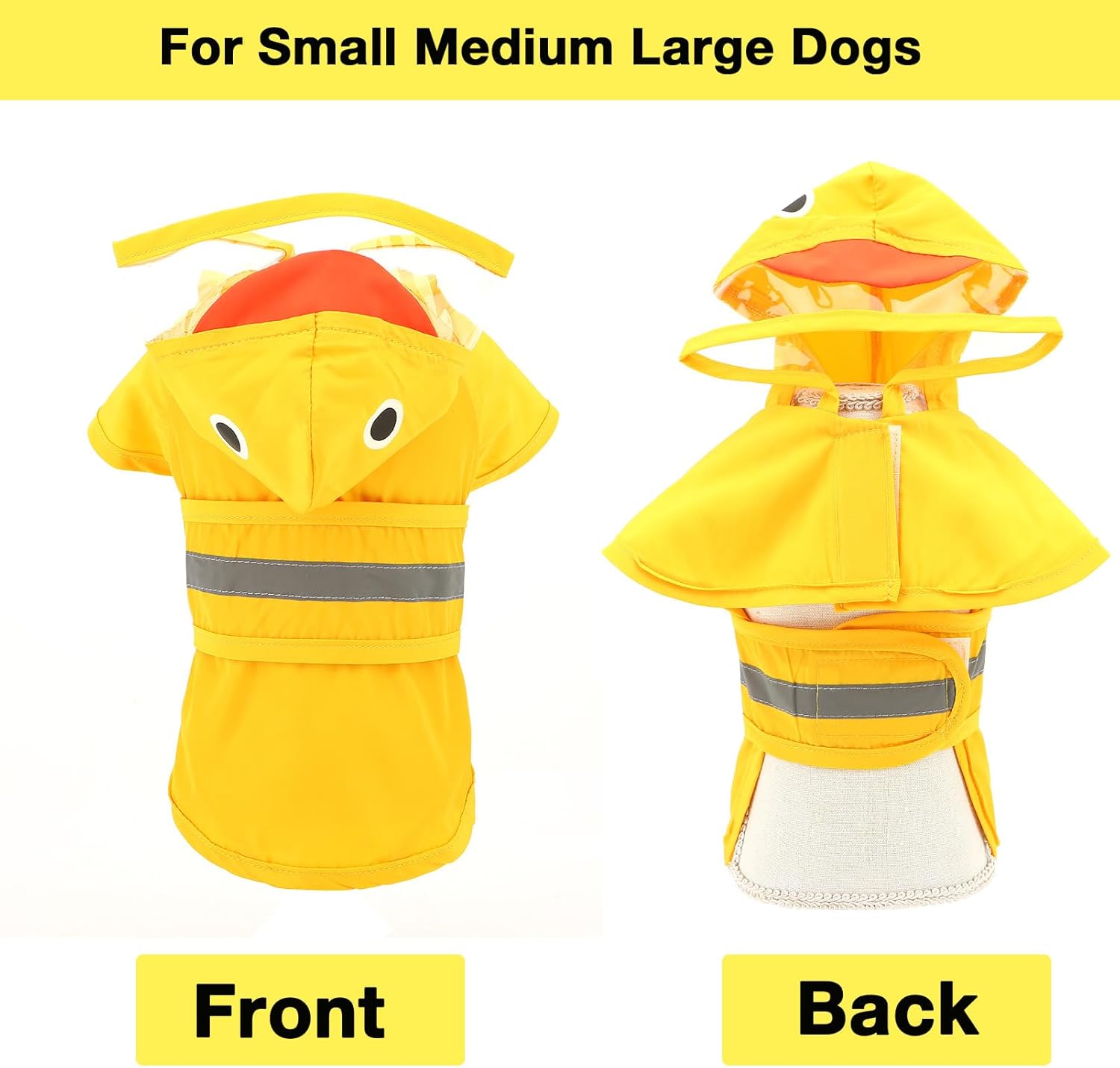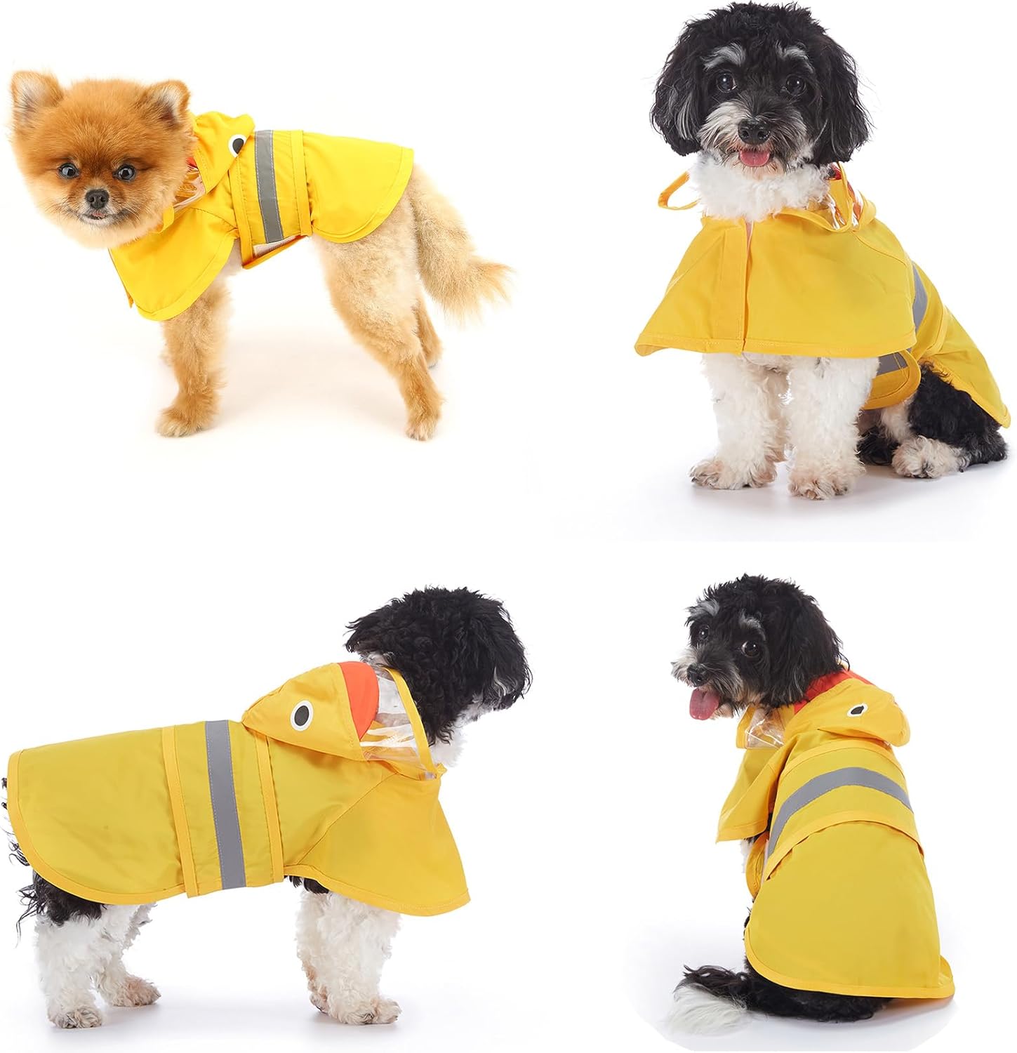 SMALLLEE_LUCKY_STORE Cute Duck Dog Raincoat with Clear Hood and Harness Hole Adjustable Waterproof Rain Jacket for Small Medium Large Dogs Boy Girl Reflective Pet Poncho, Yellow, M
