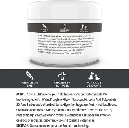 - MEDICATED CAT & DOG WIPES: Ketoconazole & Chlorhexidine wipes for cats & dogs treat & eliminate skin infections. Great for a dog yeast infection, Fungus, Bacteria, Mange, Ringworm, Hotspots & Pyoderma.