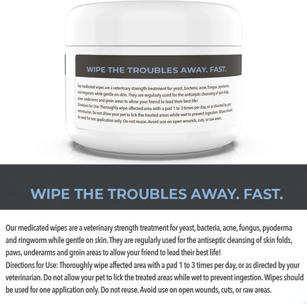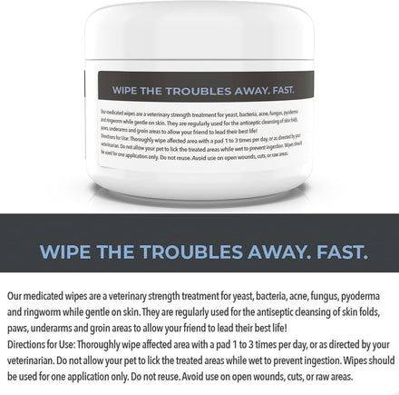 - SATISFACTION GUARANTEED: We guarantee our Antiseptic, Antifungal, and Antibacterial medicated wipes for dogs and cats will help alleviate your cat or dog's skin infections. If it doesn’t work, send us the remaining pads and we'll make it right!