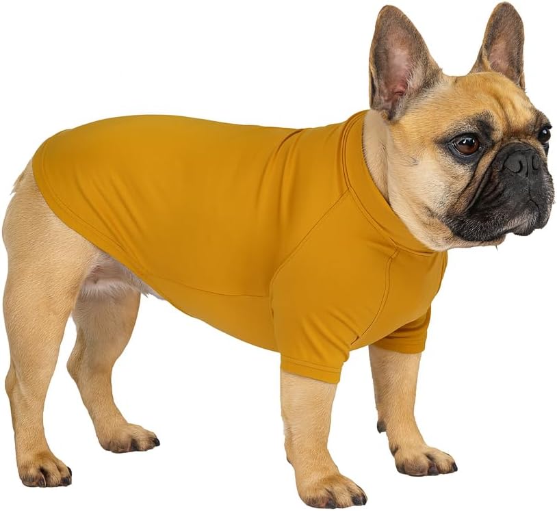 This soft cotton dog shirt is designed to keep your pup comfortable and protected in every season. Made from breathable, stretchy fabric used in yoga wear, it fits snugly without restricting movement – perfect for indoor lounging or outdoor walks.