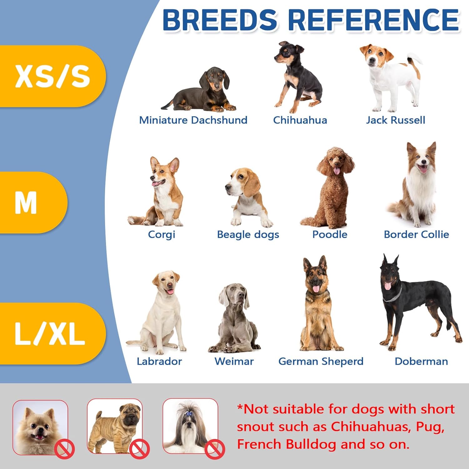 - Size Guide & Multi-Scenario Use: Size M- Works for mouth circumference less than 9.84", and snout length greater than 2.55". Pre-Use Nail Trimming - Smart dogs will try to stick nails through the mesh hole to take off or damage the muzzle. Versatile Applications - Perfect for walks, car rides, training sessions, or post-surgery recovery
