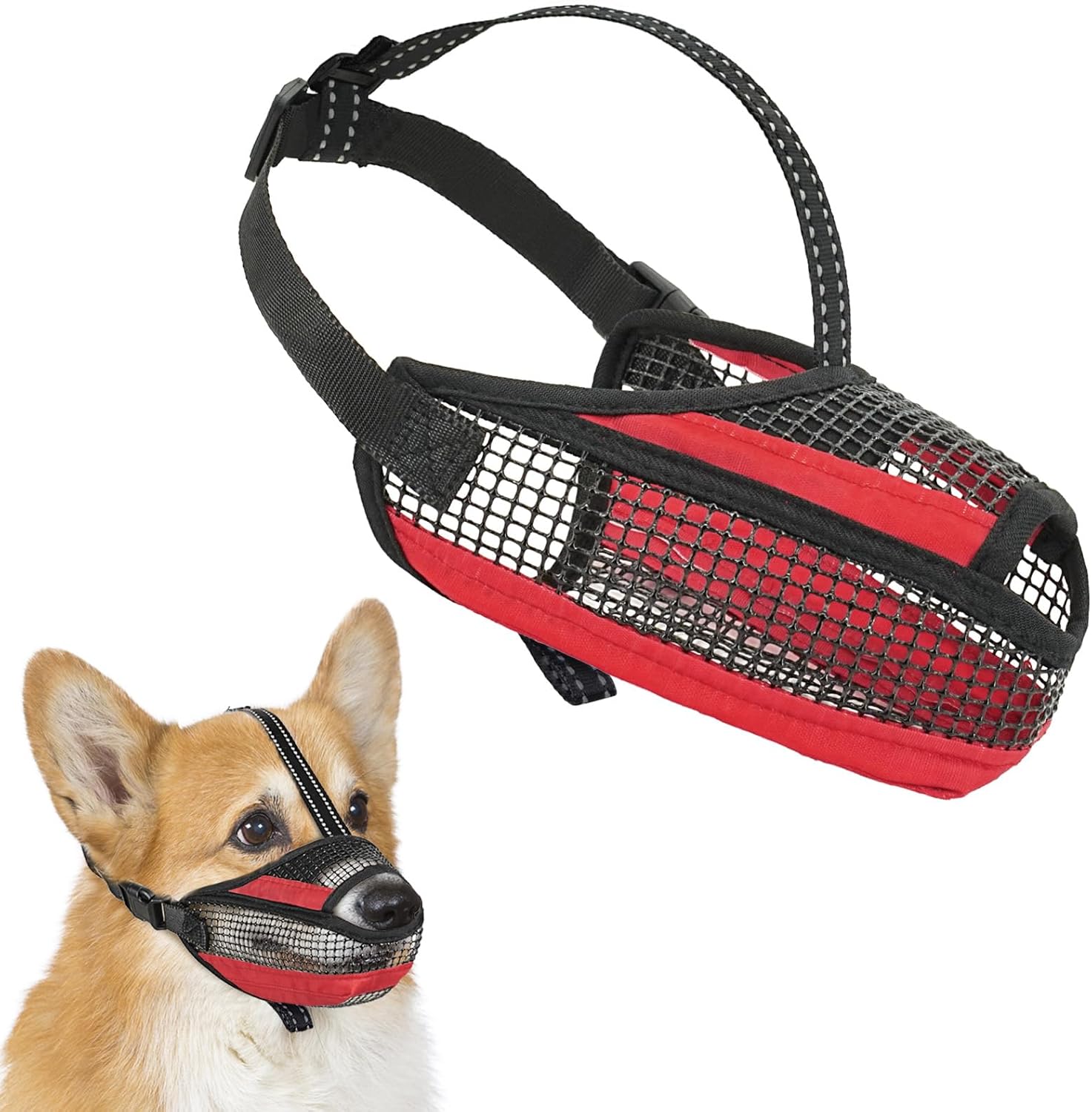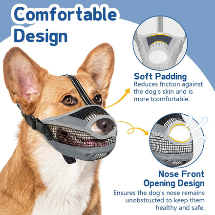 - All-Day Comfort with Open Design: Mesh Breathable Fabric - Breathing fabric prevents overheating, unlike suffocating closed muzzles. No-Rub Nose Guard - With the innovative front opening design, this dog muzzles will not rub your dog's nose.Smooth soft edges reduse friction , even during vigorous play, ensuring maximum comfort during active play