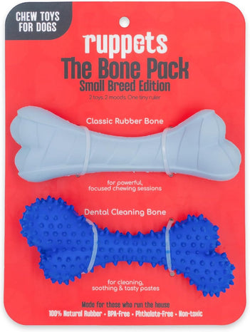 The Bone Pack is made for the little rulers of the house. Whether they’re teething, cleaning their teeth, or just having fun, Ruppets toys keep them active, safe, and happy.