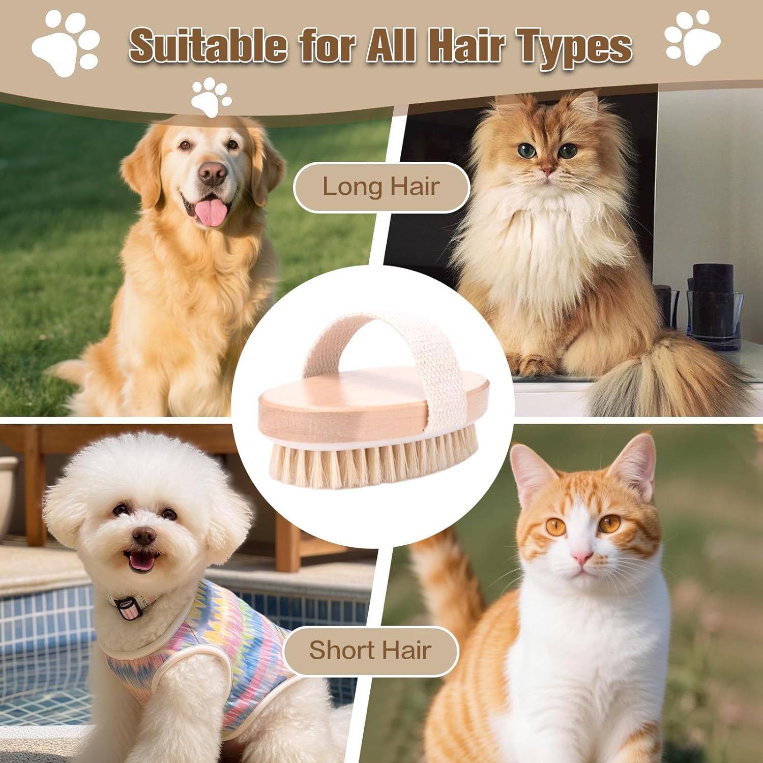 - Suitable for All Hair Types: Whether your pet has short, long, or curly fur, this cat hair brush is suitable for all coat types. The dog grooming brush works for all breeds—large, medium, or small—providing thorough care for your pet's coat.