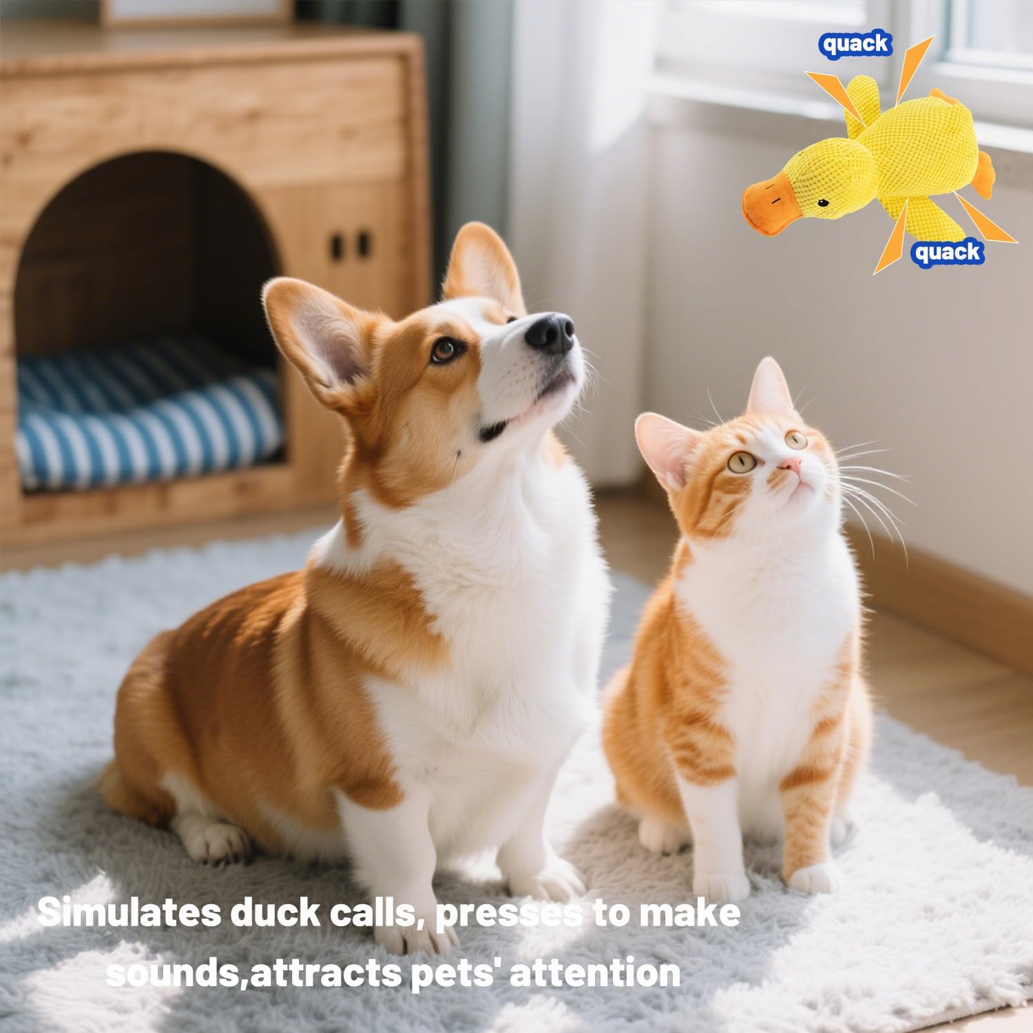 Soothing Plush Pet Toy with Sound Quack, Pet Interactive Companion, Indoor and Outdoor Cat and Dog Toys, Stuffed Dog Toys Chew-Resistant Chew Toy, Calming Duck Toy for Dogs (Yellow, Large)
