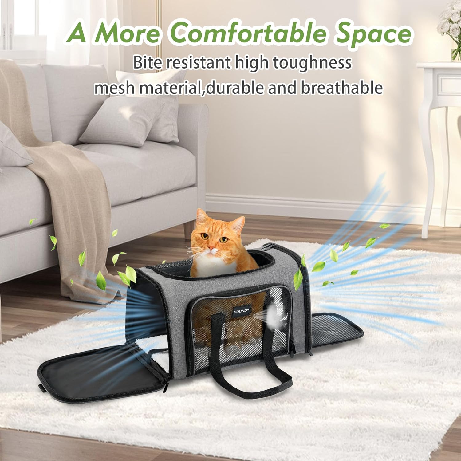 Soundy Dog Carrier Cat Carriers Airline Approved Pet Carrier for Small Medium Dogs Cats Under 15Lbs Puppies Collapsible Soft Sided TSA Travel Puppy Carrier Bag (Medium, Grey)