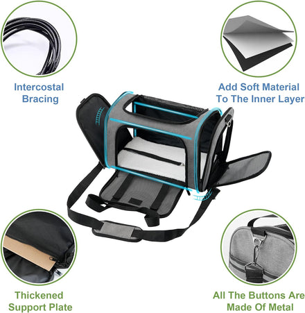 • MORE SOLID PET CARRIER: Built-in metal wire and reinforced fiber rod, whether it is used by hand or carried on the shoulder, it will not be deformed by the pet's weight, and pets can even stand on the top.