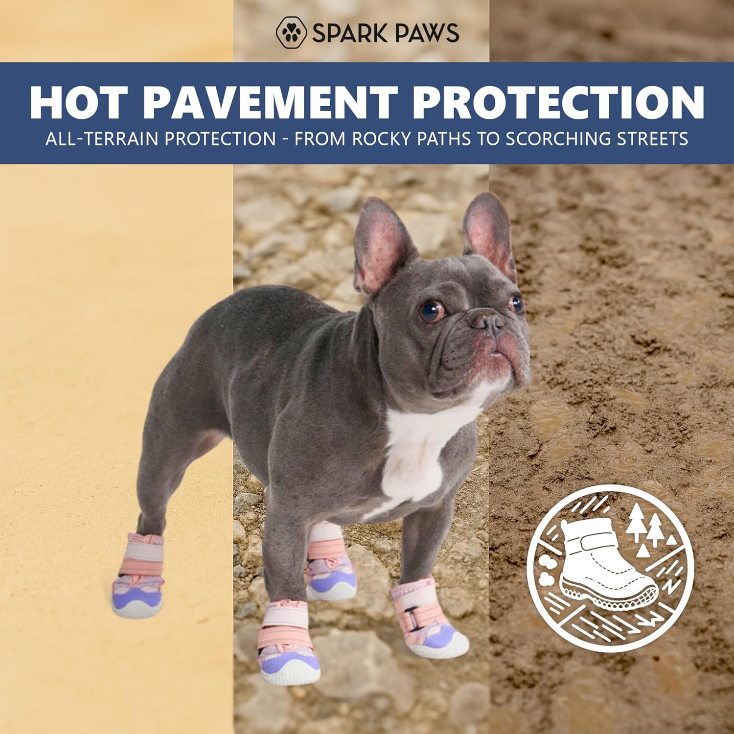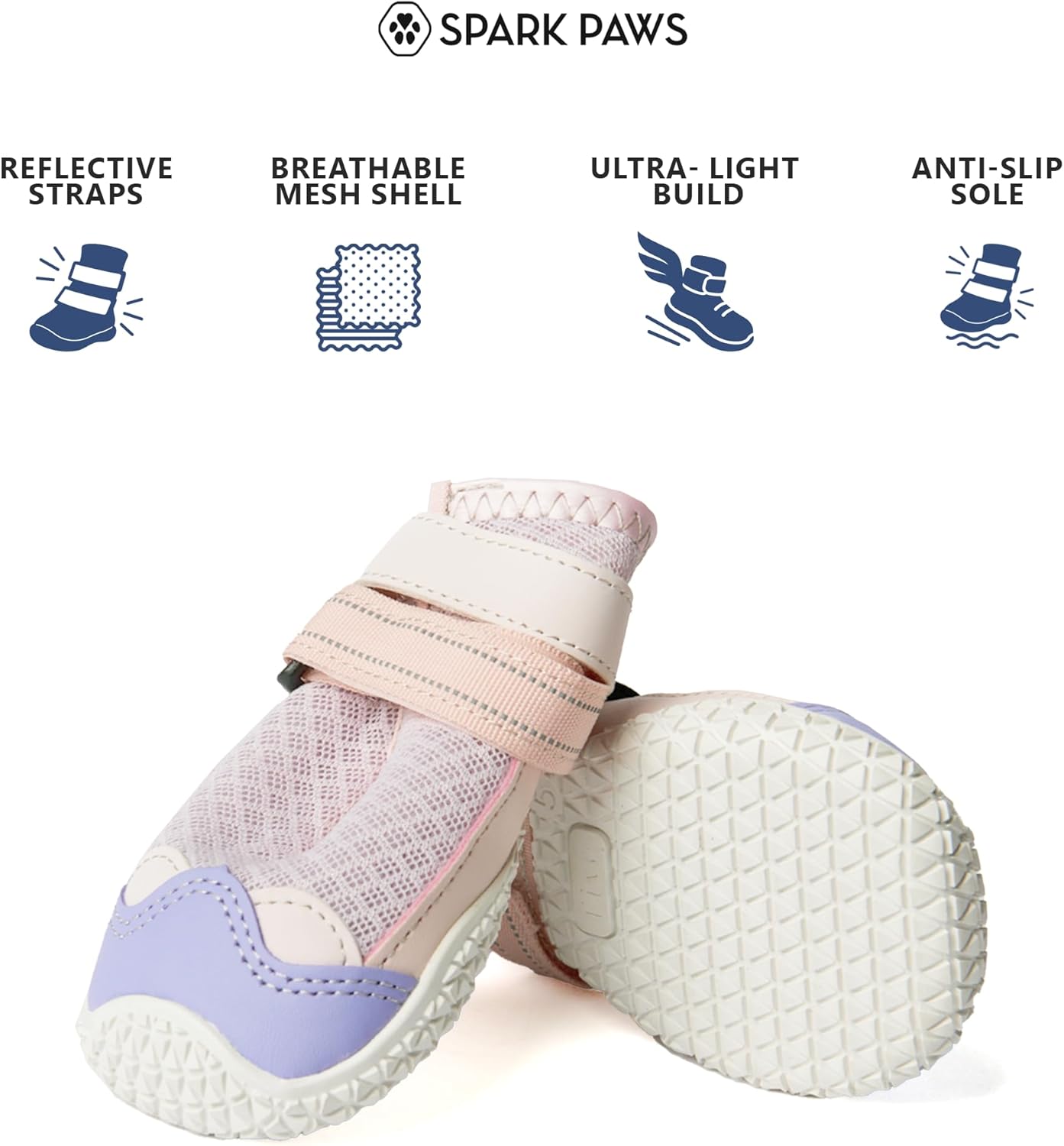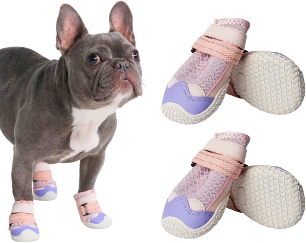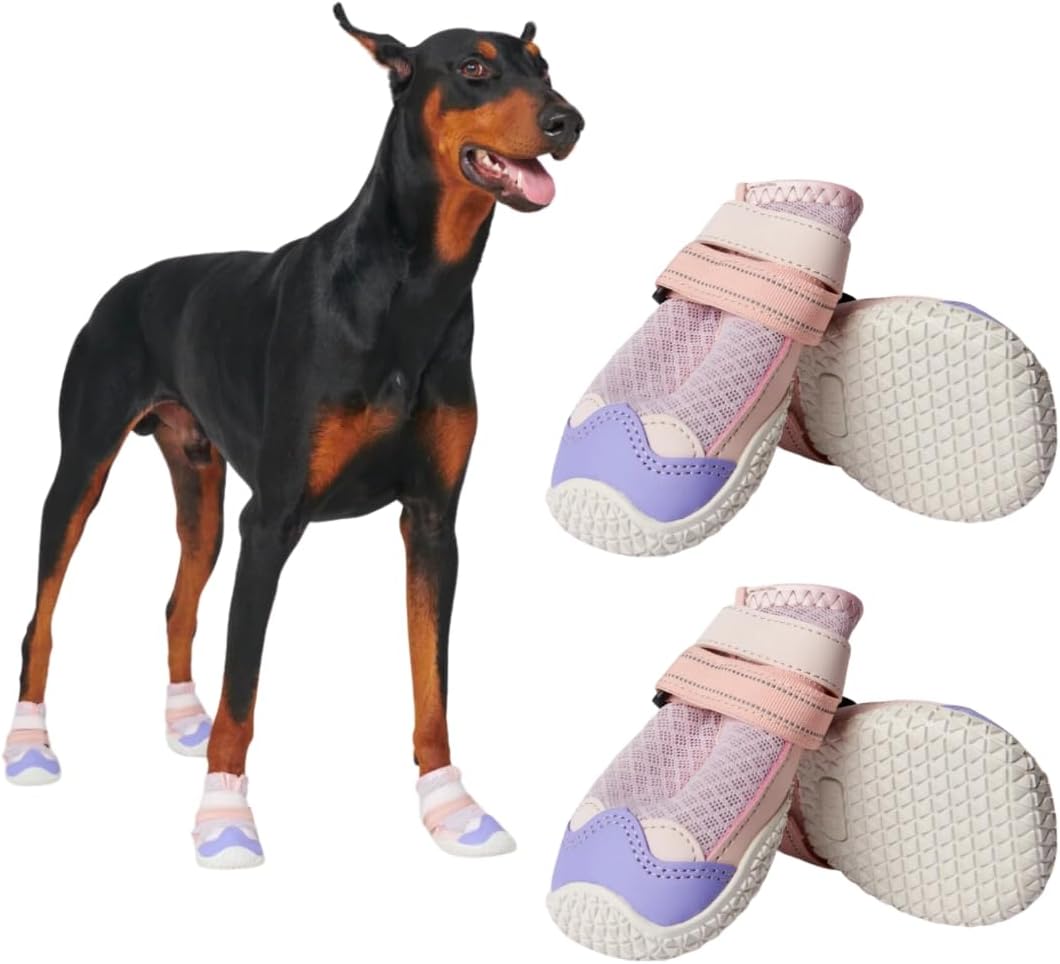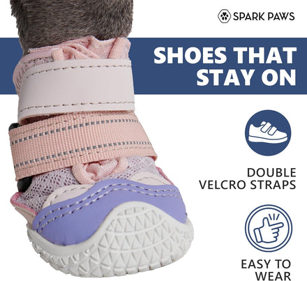 Spark Paws Dog Shoes, for Hiking and Hot Pavement, Summer Dog Paw Protection from Hot Surfaces, Non-Slip, Breathable, Durable 4PCS - Pink Purple, A