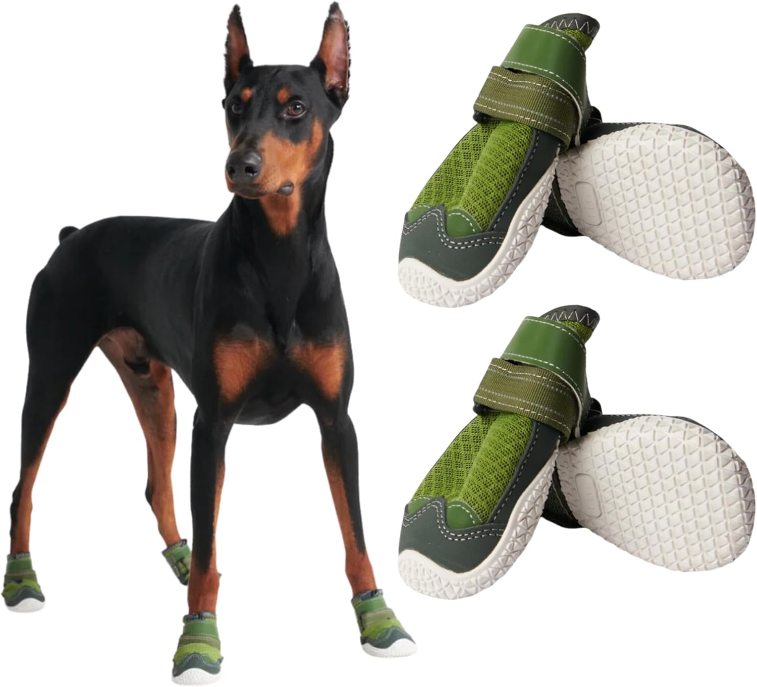 • Protect your dog's paws - From hot pavement, sharp terrains, ice, mud, snow and salt. These breathable shoes come with non-slip soles providing traction and support.