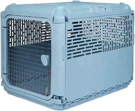 When you think of a typical plastic pet kennel, the things that probably come to mind, include big, bulky, clunky, heavy, hard to store, etc. That's not so when it comes to the SportPet Medium Collapsible Pet Kennel! This durable pet kennel securely contains your medium animal, cat or dog, while also folding flat quickly for easy storage. The convenient carry handle makes it a breeze to carry. Speaking of breeze, the slots on the sides provide for ventilation and visibility, so your pet will be comfortable and able to see their surroundings. Additionally, your pet will stay secure with a durable, twist lock metal gate. The kennel is intended for indoor or outdoor use with kennel trained pets up to 50 lbs. The SportPet Medium Collapsible Pet Kennel reimagines traveling with your pet!