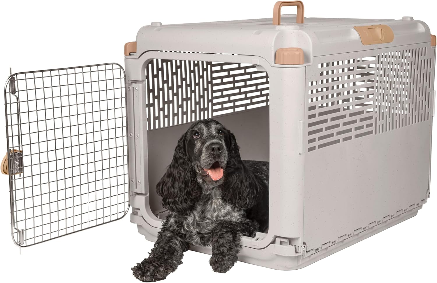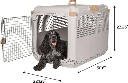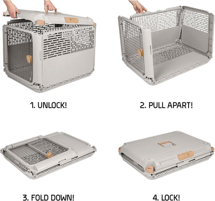 When you think of a typical plastic pet kennel, the things that probably come to mind, include big, bulky, clunky, heavy, hard to store, etc. That's not so when it comes to the SportPet Collapsible Pet Kennel! This durable pet kennel securely contains your medium animal, cat or dog, while also folding flat quickly for easy storage. The convenient carry handle makes it a breeze to carry. Speaking of breeze, the slots on the sides provide for ventilation and visibility, so your pet will be comfortable and able to see their surroundings. Additionally, your pet will stay secure with a durable, twist lock metal gate. The kennel is intended for indoor or outdoor use with kennel trained pets. The SportPet Collapsible Pet Kennel reimagines traveling with your pet!