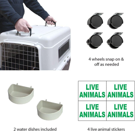 - Iata airline approved. 2 dishes, 4 live animal stickers, metal bolts and nuts included