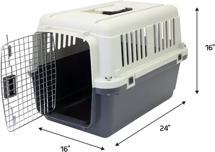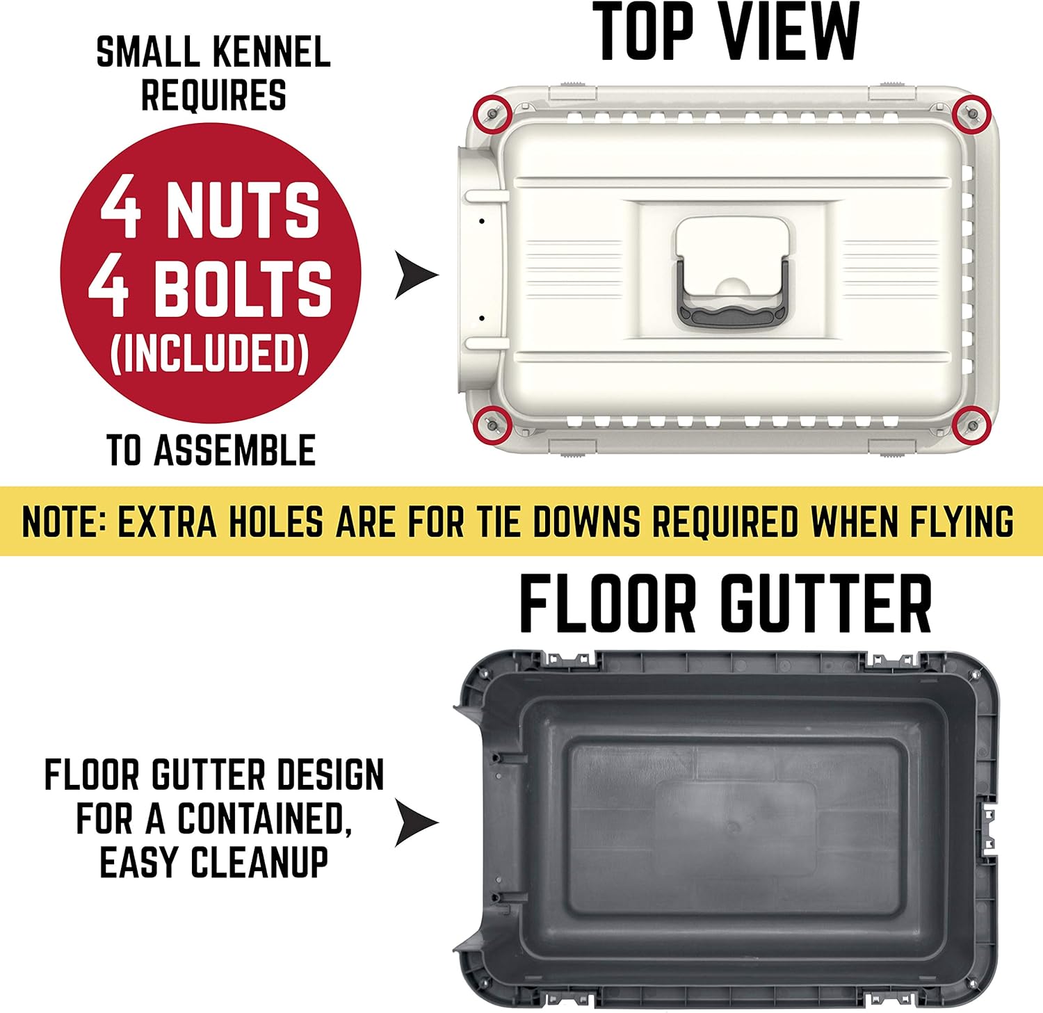 This is a plastic kennel designed for a lifetime of use. Our plastic crate will be your “go to” everyday home crate and Travel kennel. Please head to http: //SportPet/kennel sizing for help sizing your dog and to ensure you buy the correct size kennel. We also had airline travel in mind when designing this kennel. We include everything you need should you chose to ever fly with your dog. Check out our VIDEO here on this page for a quick tour of kennel features. Crate/ kennel assembly is fast and easy. Locking snaps hold the kennel halves together; additional included metal hardware locks the kennel together giving you peace of mind that your crate will make it safe and secure. Some dogs chew their escape through plastic ventilation holes. We use metal slats to mitigate the chewing problem and keep your pet safe. Accident moat pulls spills away from your pet’s body, out to the edges of the kennel strong metal kennel door with a smooth, easy-to-grasp latch thick impact resistant poly shell can take a wallop and keep on going pet parents should check with their airline before a trip. Airline and cargo carrier rules vary between countries and airlines. Pet crating and kennel shipment rules do change regularly, so be sure to check with proper authority about Pet shipments, Reds, and pet certifications and immunizations before your pet’s travel date. Limit kennel Time, don’t park under the sun, keep pet in ventilated areas with temperature control and air movement. For pets and intended use only. Questions? Please contact our customer service at info@sportpet. Net
