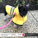 - STYLISH, COMFORTABLE AND DRY: Look good. Feel good. Stay active. We've designed a coat that will achieve all your fashion needs while maintaining optimal functionality. This poncho features a vibrant yellow color with a sporty full coverage hood. Made from 100% polyester waterproof fabric, so your dog will remain dry and warm in all climates. Leash holes have been designed into the coat for comfort during walks.