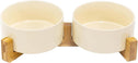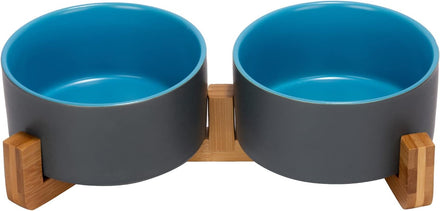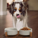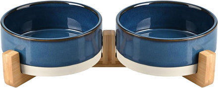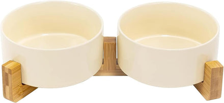 - Double Bowl Design:One dog bowl for food and one for water, Each ceramic cat bowl has a Unique wooden stand, raising the dishes closer to your pet for more comfortable eating
