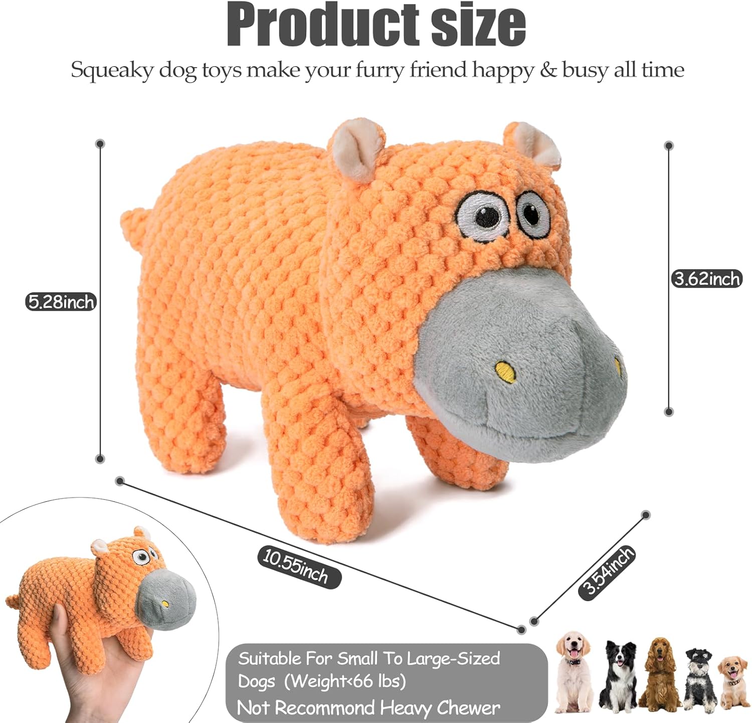 - Suit All Dog Breeds(except heavy chewers): From tiny puppies to full-grown large dog, our dog squeaky toys are versatile. Whatever training a small breed, entertaining a medium-sized dog, or challenging a large one. Dog plush toys are suitable for every need