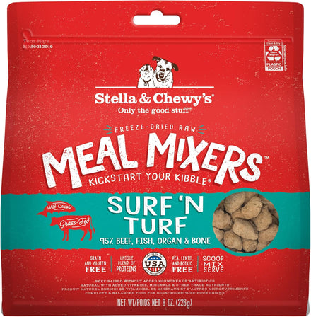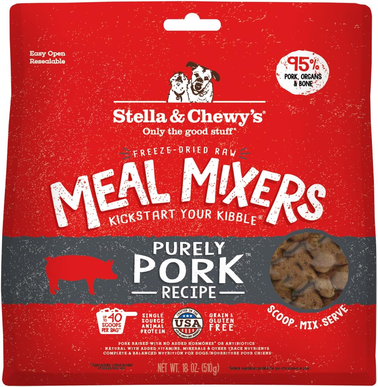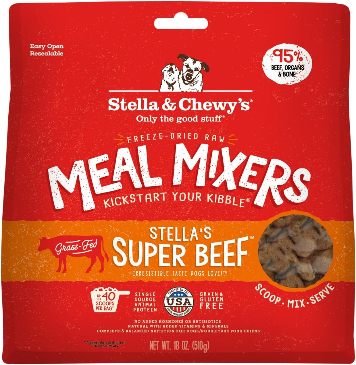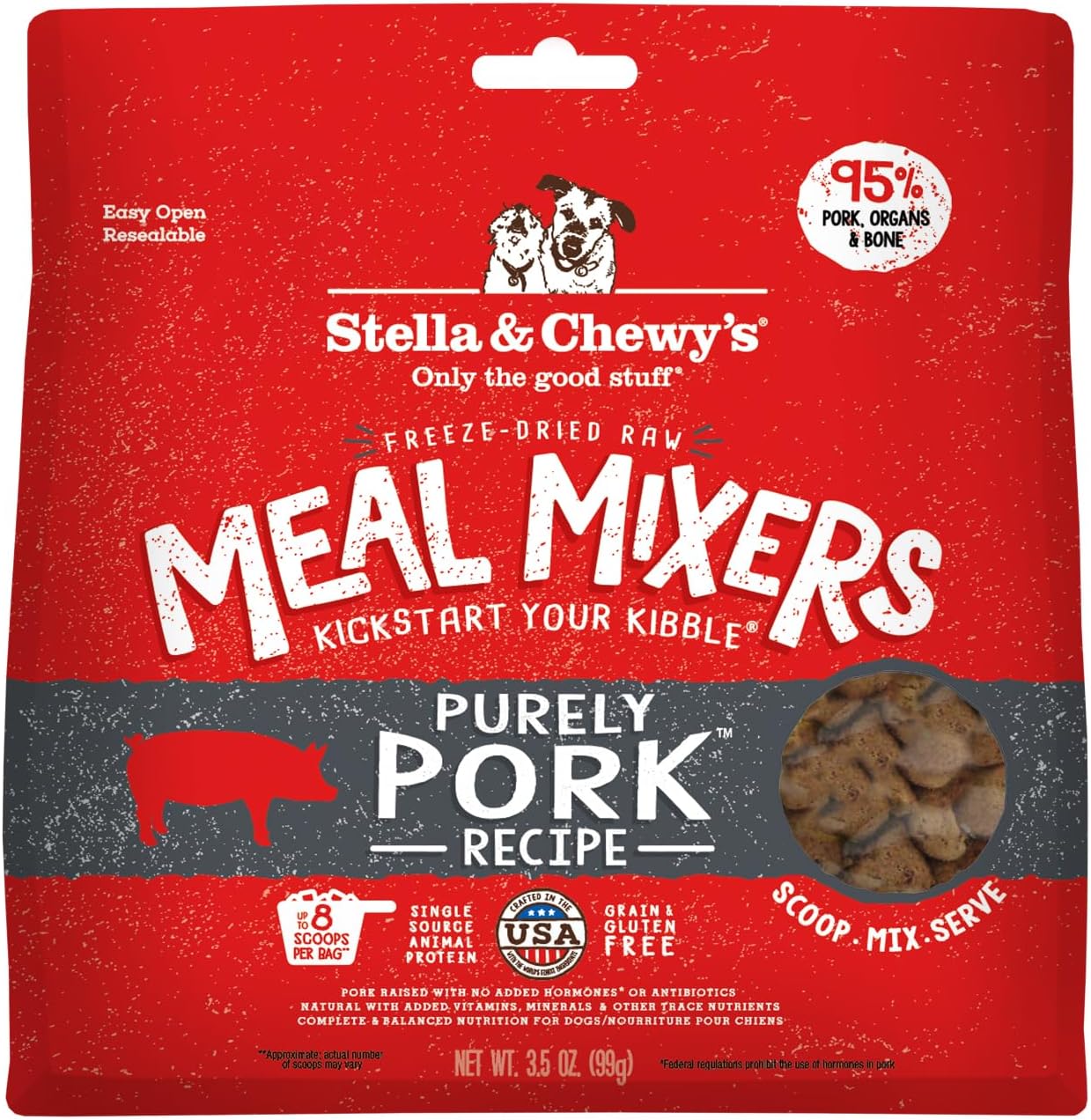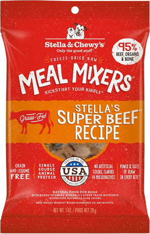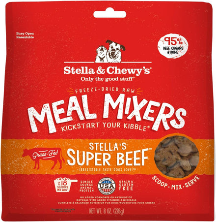 Transform Your Dog's Mealtime with Stella & Chewy's Freeze-Dried Raw Beef Meal Mixers Your dog deserves the nutrition of raw food with the convenience you need. Stella & Chewy's Freeze-Dried Raw Beef Meal Mixers deliver both in a simple, versatile form that dogs love - especially picky eaters! As a Topper: Simply crumble over your dog's regular food to enhance nutrition and flavor (most economical option) As a Complete Meal: Serve as is or rehydrate with warm water for a softer texture and enhanced aroma Premium Ingredients You Can See: 95% farm-raised pork, organs, and bone Organic fruits and vegetables Added probiotics for digestive health Essential vitamins and minerals NO artificial preservatives, colors, or flavors NO grains, gluten, potatoes, peas, lentils, fillers, or by-products Made in the USA with responsibly sourced ingredients in small batches to preserve natural nutrients. Perfect for dogs with sensitivities. Available in multiple sizes to fit your needs.