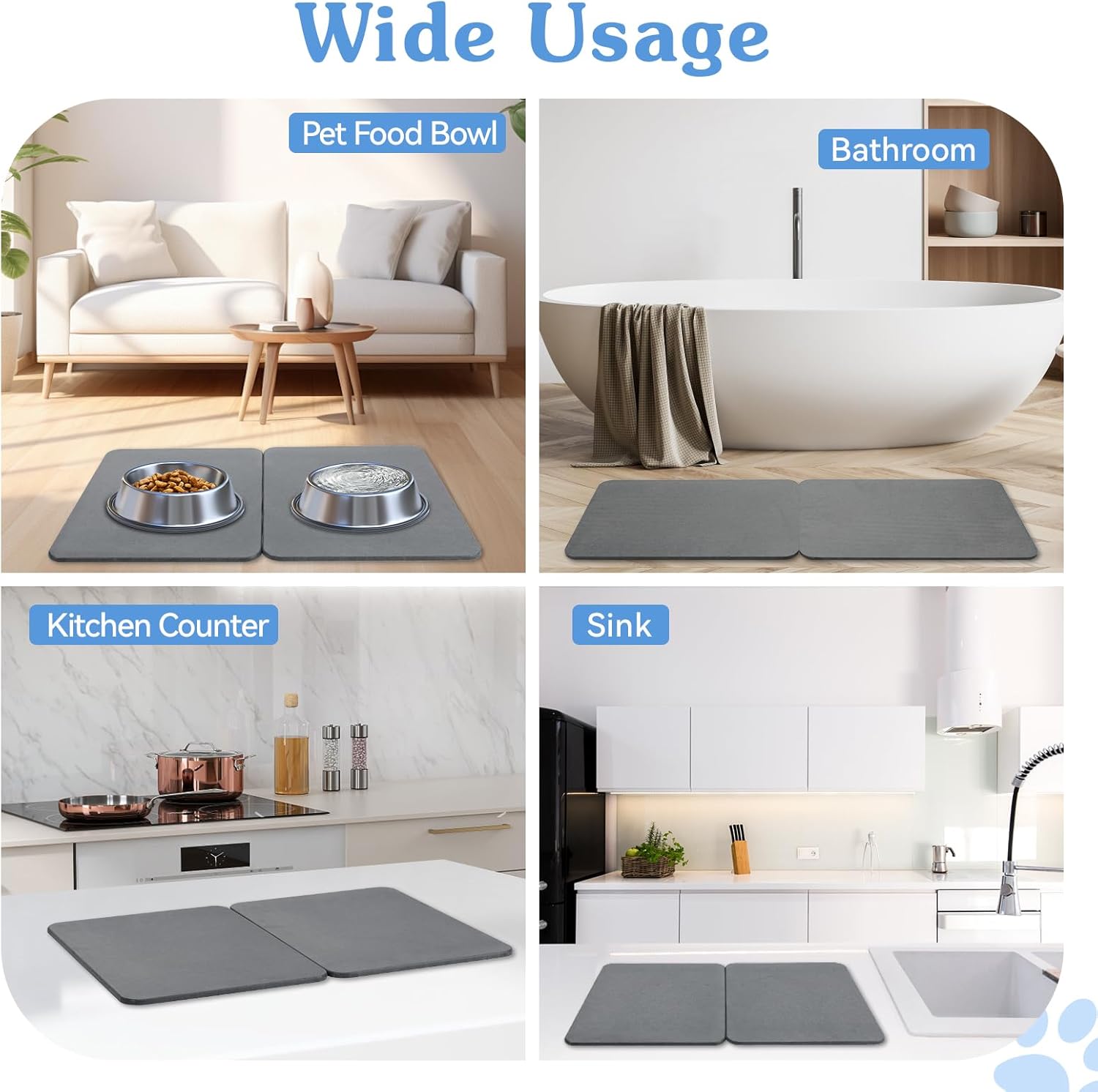 - 【Wide Application】Each mat measures 12"*16". Including 2 packs stone mat which can be used in multiple scenarios, or assembled together as a large size for more flexible use. Not only can it be used for pet food and water bowls or automatic feeders, it can also be used for kitchen counter and bathroom.