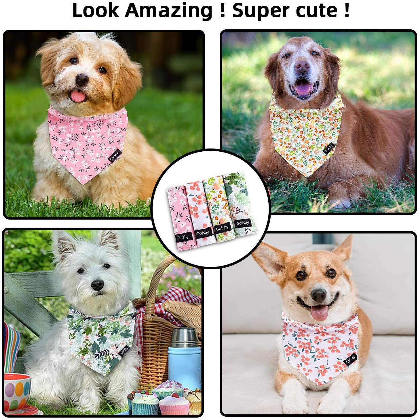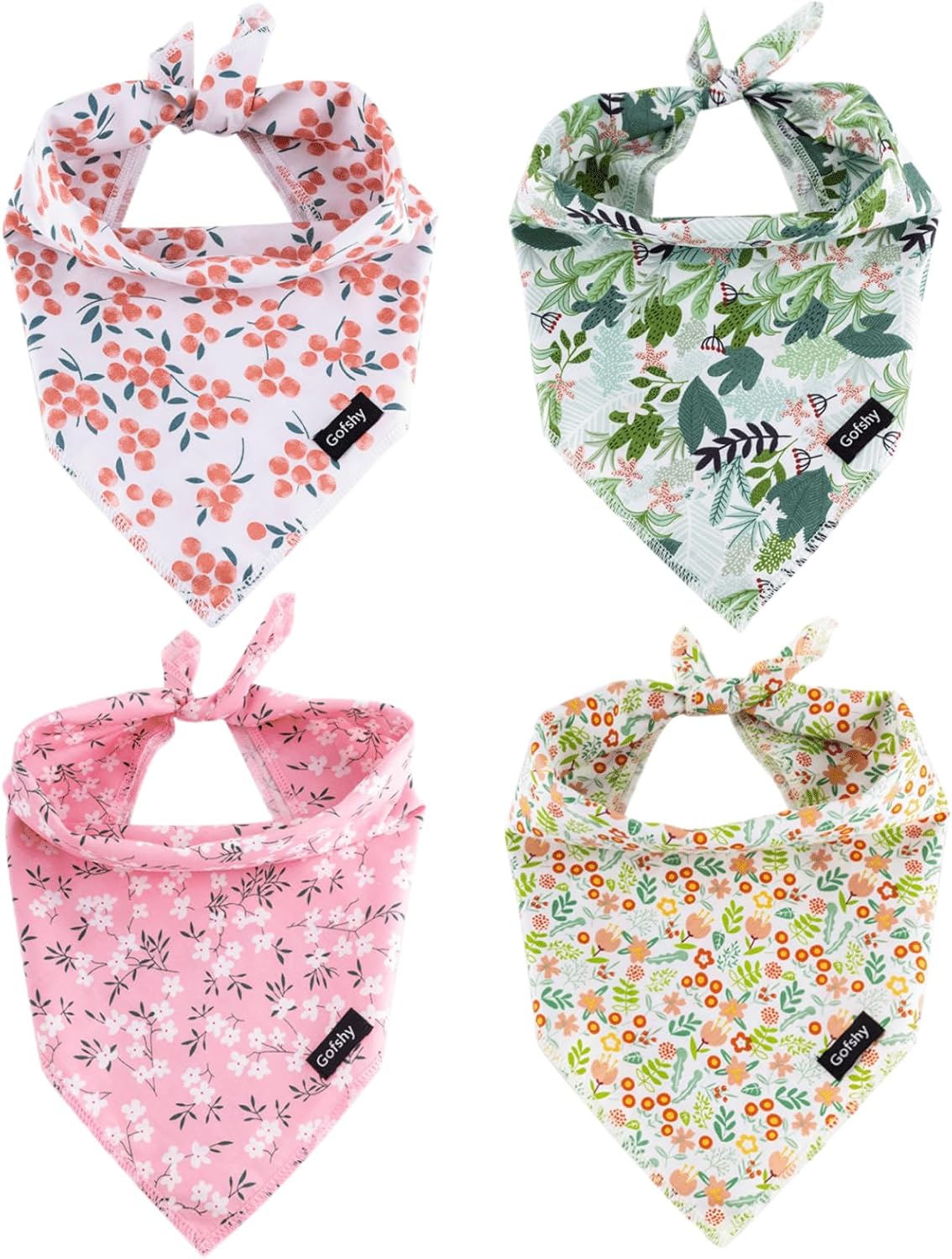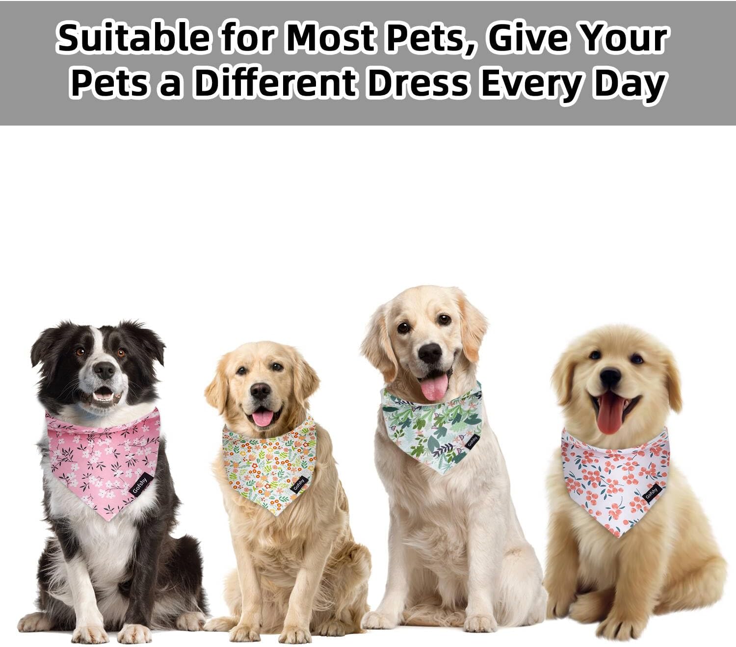 - Cute Dog Bandanas: The spring summer colors floral bandanas make your pet look super cute, the colors are vibrant and wonderful for girls, 4PCS pink orange green bandanas can change the look of your pet every day of one week, Cute gift ideas.