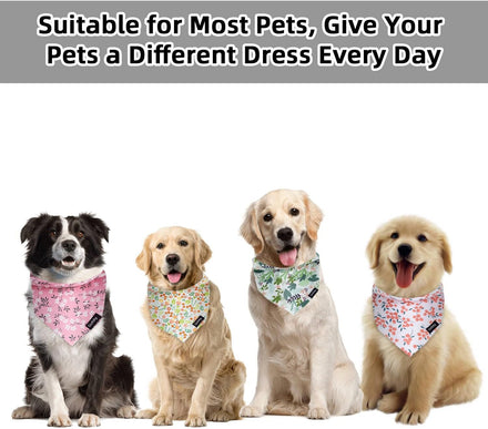 - Styling Designs: You absolutely love this unique dog scarfs, One is printed fruit, one is green leaves with red flowers, one is pink with white flowers, and one is full of cute little orange flowers, the colors are vibrant and wonderful, the design will never go out of style.