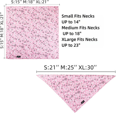 - Adjustable Sizing:Square Sizes 15*15inches Small fits necks up to 14". 18*18inches Medium fits necks up to 18". 21*21inches Xlarge fits necks up to 23". Please measure your pet's neck and leave room to tie knot.
