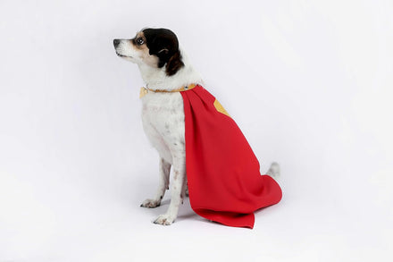 - PACKAGE INCLUDES: A red super dog cape, a soft leather collar and yellow super dog tags, provide a comfortable wearing experience for dogs