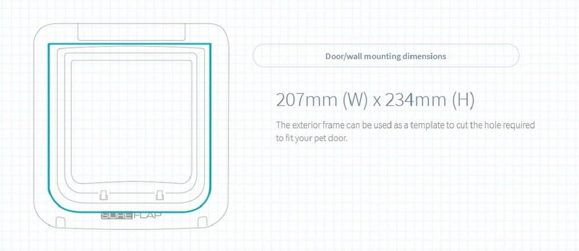 - DOOR OPENING: The Microchip Pet Door Flap opening is 6 11/16” (H) by 7” (W) and can be installed in doors, windows or walls – accessories are available from SureFlap.