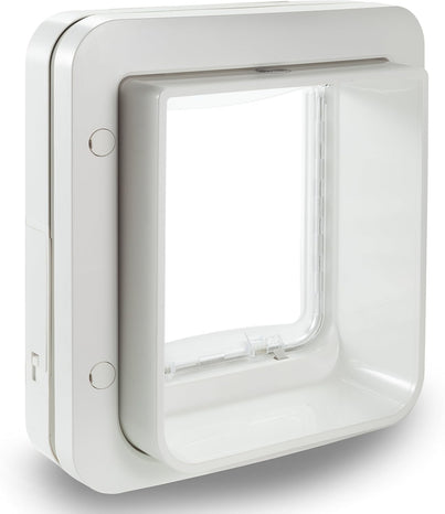 Product Description The SureFlap Microchip Pet Door only opens for your pet’s veterinary implanted microchip or RFID collar tag to keep intruder animals out so that your pet can feel safe and secure in their own home. If an intruder animal enters your home, it can cause a lot of stress to your pet and lead to fights or indoor spray marking. The SureFlap Microchip Pet Door is compatible with all common microchip types. It can store up to 32 pets and it is selective entry, preventing intruders while any cat can leave. The pet door can be installed in doors, windows or walls and it is battery-powered, meaning it can be installed virtually anywhere. A pet door mounting adaptor is required for glass installations and a mounting adaptor and one or more tunnel extenders may be required for wall installations. Unique RFID collar tags are available for non-microchipped pets and one collar tag is included with the product. The product includes a three-year warranty. Set Contains: 1 x SureFlap Microchip Pet Door 1 x user manual 3 x sets of screws of varying lengths 1 x RFID collar tag Set Contains: 1 x SureFlap Microchip Pet Door 1 x user manual 3 x sets of screws of varying lengths 1 x RFID collar tag